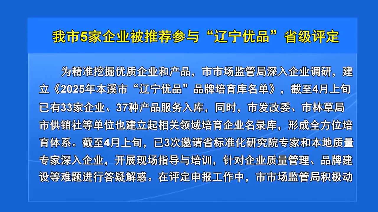 我市5家企业被推荐参与“辽宁优品”省级评定