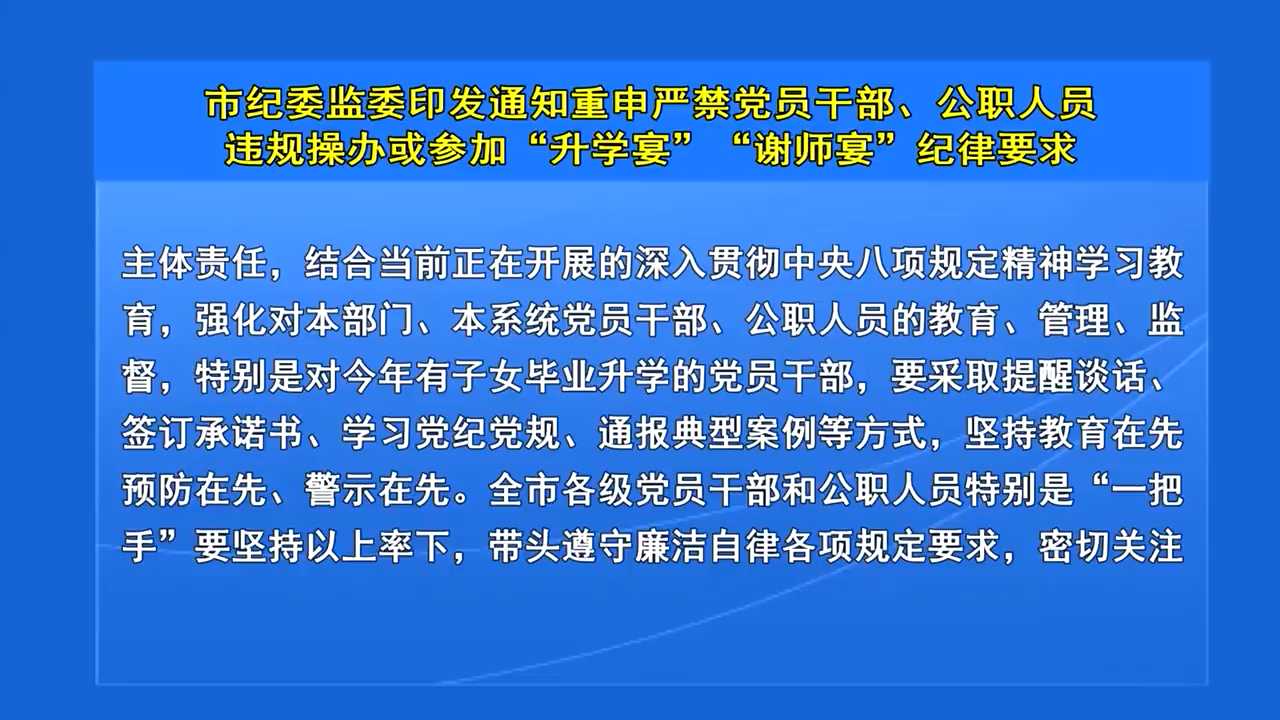 市纪委监委印发通知重申严禁党员干部、公职人员违规操办或参加“升学宴”“谢师宴”纪律要求