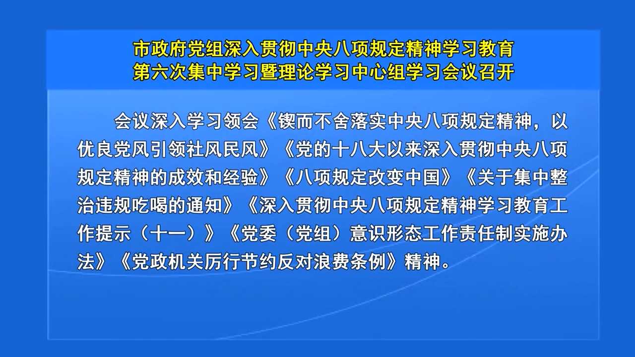 市政府党组深入贯彻中央八项规定精神学习教育第六次集中学习暨理论学习中心组学习会议召开