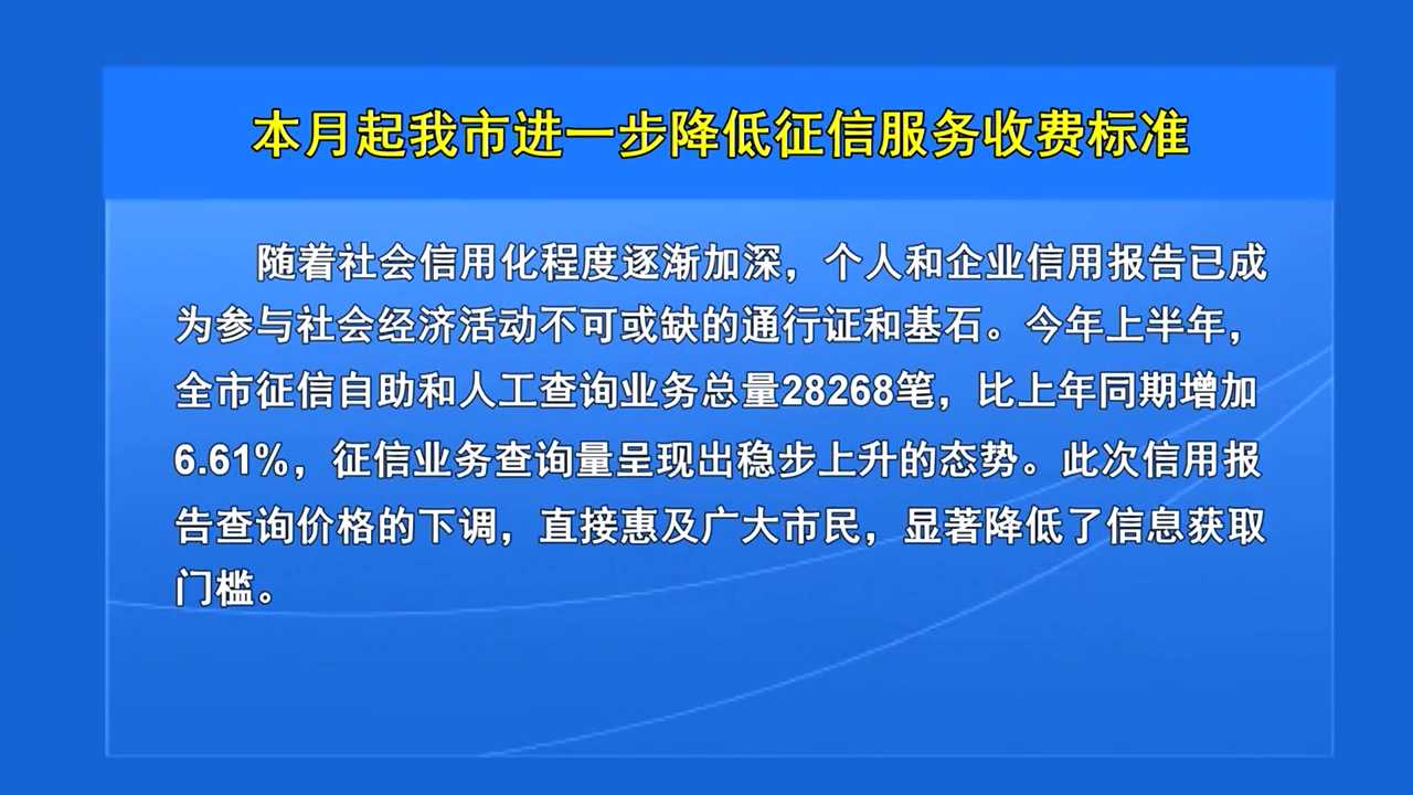 本月起我市进一步降低征信服务收费标准