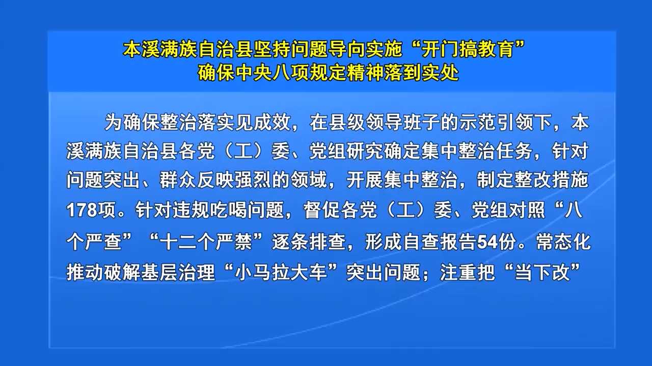 本溪满族自治县坚持问题导向实施“开门搞教育”确保中央八项规定精神落到实处