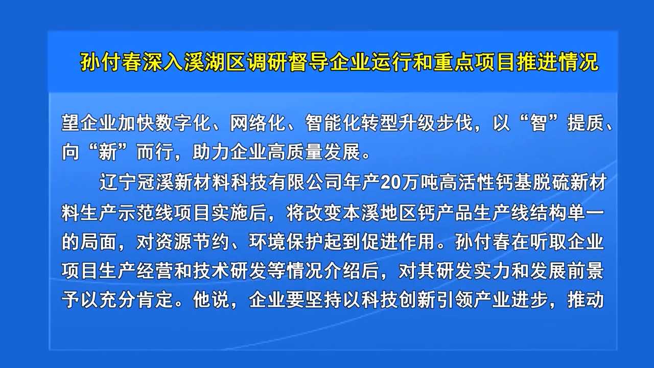 孙付春深入溪湖区调研督导企业运行和重点项目推进情况