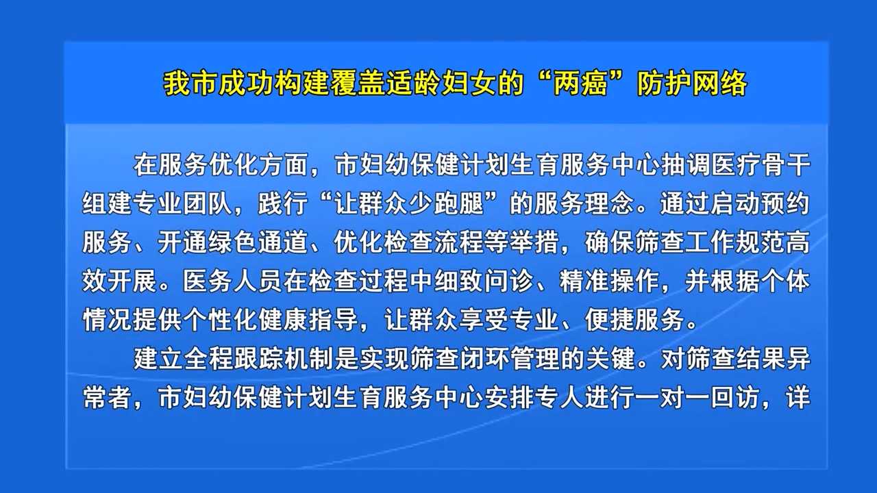我市成功构建覆盖适龄妇女的“两癌”防护网络
