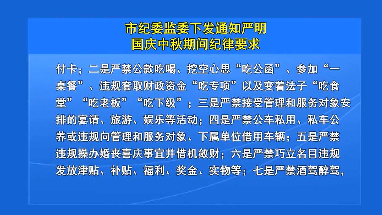 市纪委监委下发通知严明国庆中秋期间纪律要求