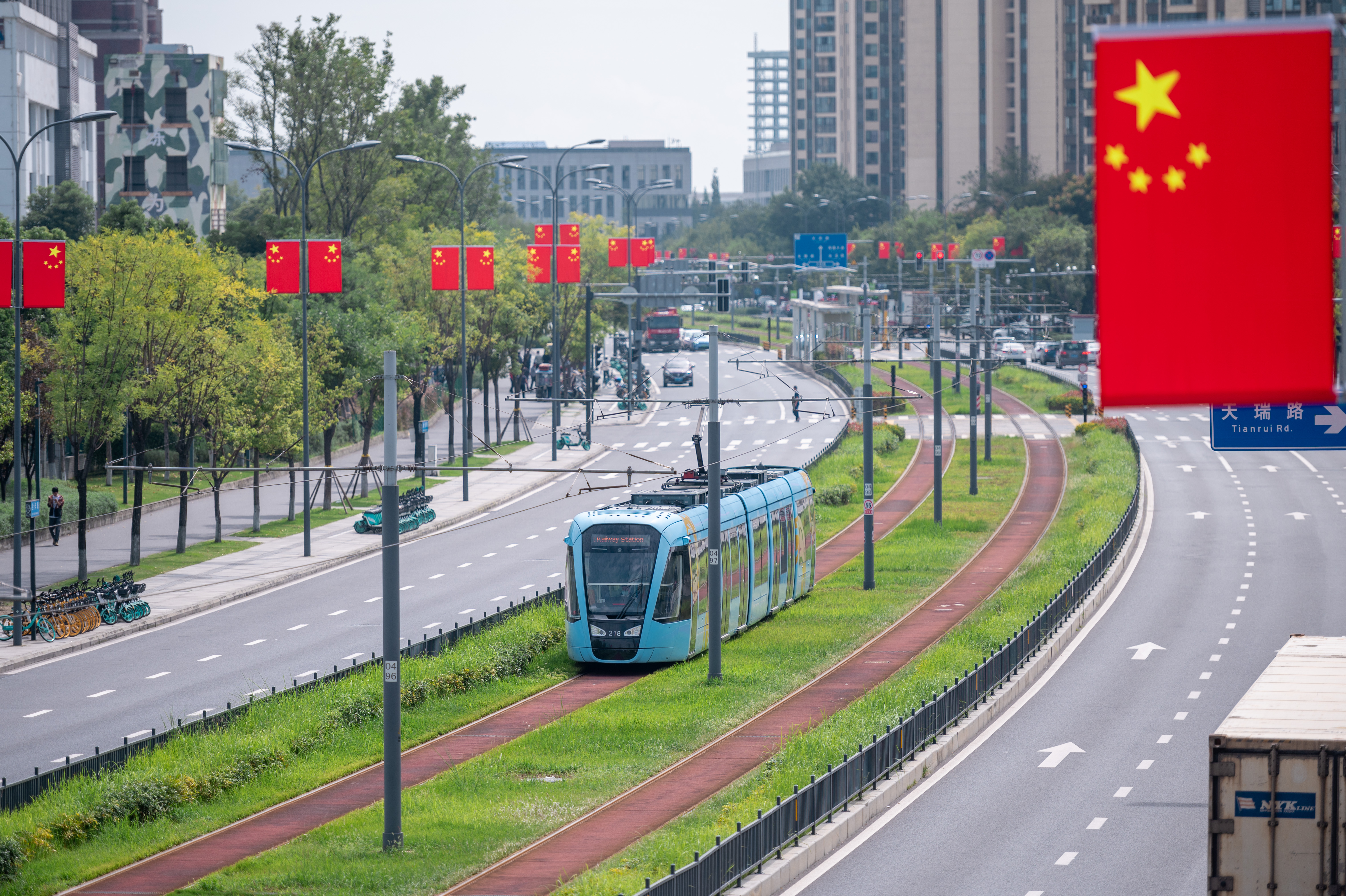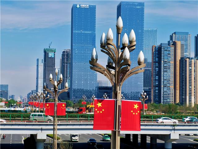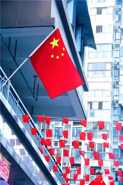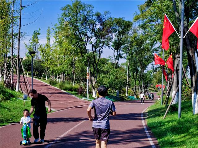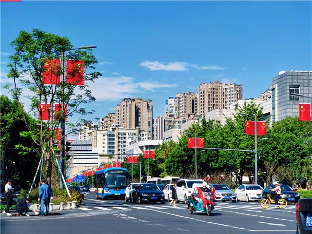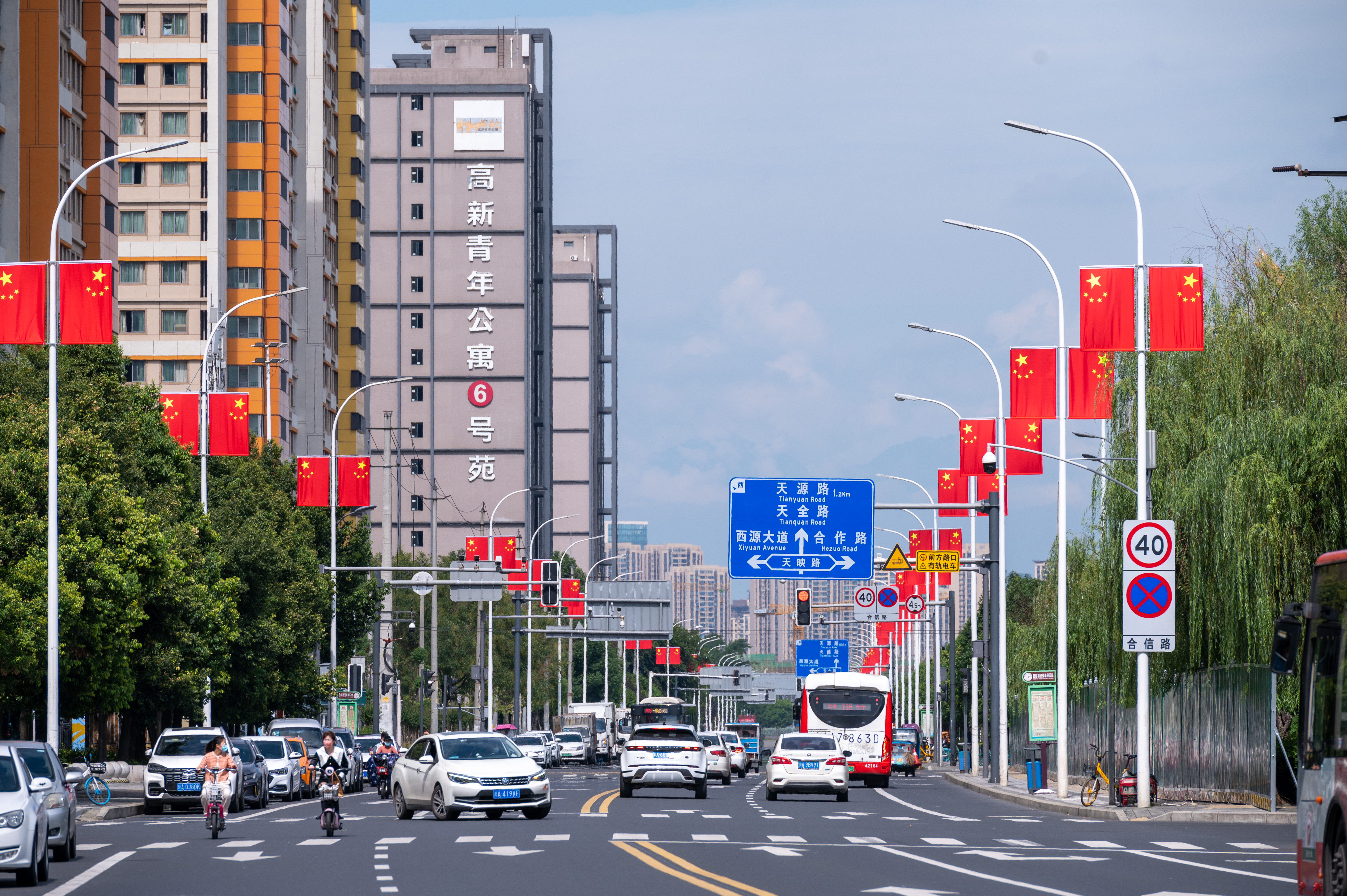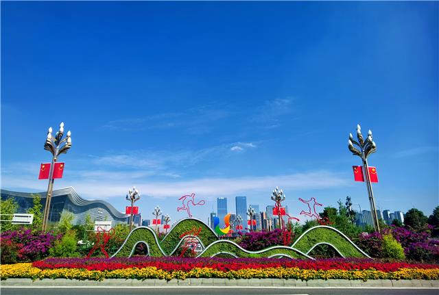 行驶在天府大道、锦城大道等主干道上,道路两旁的灯柱上已挂起五星红旗,加上路边的鲜花绿植,一条条道路被装点得格外美丽。走在街头巷尾和公园里,随处可见鲜红的国旗悬挂着,远远望去,仿佛一片红色的海洋,营造出浓浓的节日氛围。一面面高悬的五星红旗,不仅扮靓了成都高新区的街头巷尾,营造出浓厚的节日氛围,也增强了市民的爱国热情和民族自豪感。