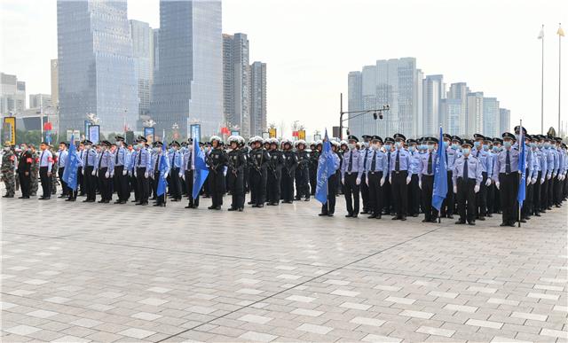 最后,成都高新公安分局主要负责同志下达动员令,在全体人员坚定有力的应答声中,各支队伍整装出发,奔赴各自岗位。