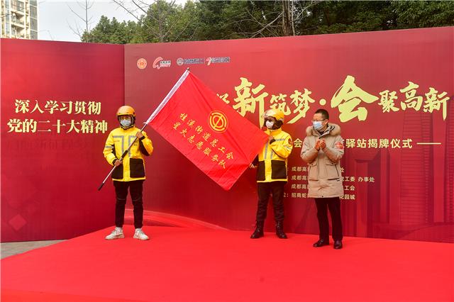 12月29日,成都高新区桂溪街道总工会“溪”友驿站“凝新筑梦·会聚高新”揭牌仪式在成都高新花园城广场举行。本次活动由成都高新区工会办事处指导,桂溪街道总工会主办,辖区工会企业代表、服务联盟成员单位代表以及新就业形态劳动者职工代表共计40余人出席此次活动。