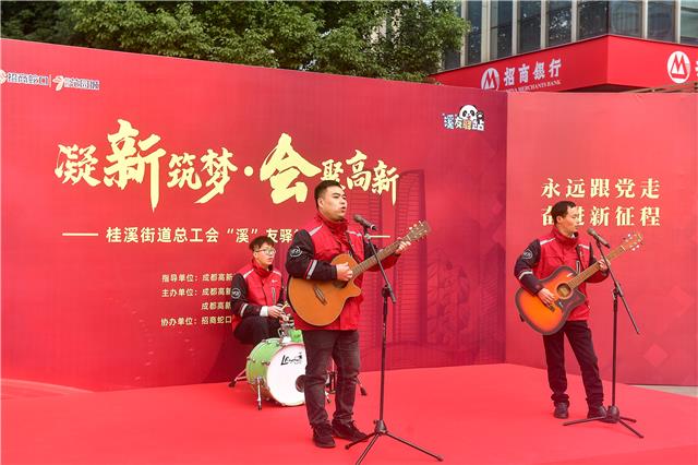 活动现场,由快递小哥乐队带来的一首《城市英雄》拉开了活动序幕。表演生动讲述了网约配送员、快递员等新就业群体劳动者们平凡而伟大的故事,展现了他们为城市建设不忘初心,勇往直前的无畏精神。随后,新就业形态群体职工代表们共同推动助力杆,“凝新筑梦·会聚高新”字样缓缓展现,标志着成都高新区桂溪街道总工会“溪”友驿站开启新征程。