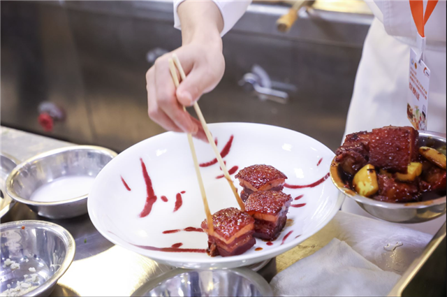 在紧张精彩的厨艺比赛中,参赛大厨们用他们精湛的刀工、娴熟的翻炒、精美的摆盘等技艺,上演了一出精妙绝伦的厨艺盛宴。“金沙排骨”肉质鲜嫩、色泽亮丽、蒜香四溢,带着椒盐的味道,让人忍不住食指大动;“鸿运兔”肉质嫩滑、爽口清润,搭配以不同蘸料,呈现出丰富极具变化的口感;“金汤海参”入口滑弹、饱吸汤汁、味浓香醇,让人回味悠长;“剁椒鱼头”色味俱佳、麻辣鲜香,让人大呼过瘾。一道道色香味俱全的菜肴纷纷呈现上来,赢得评委阵阵掌声。