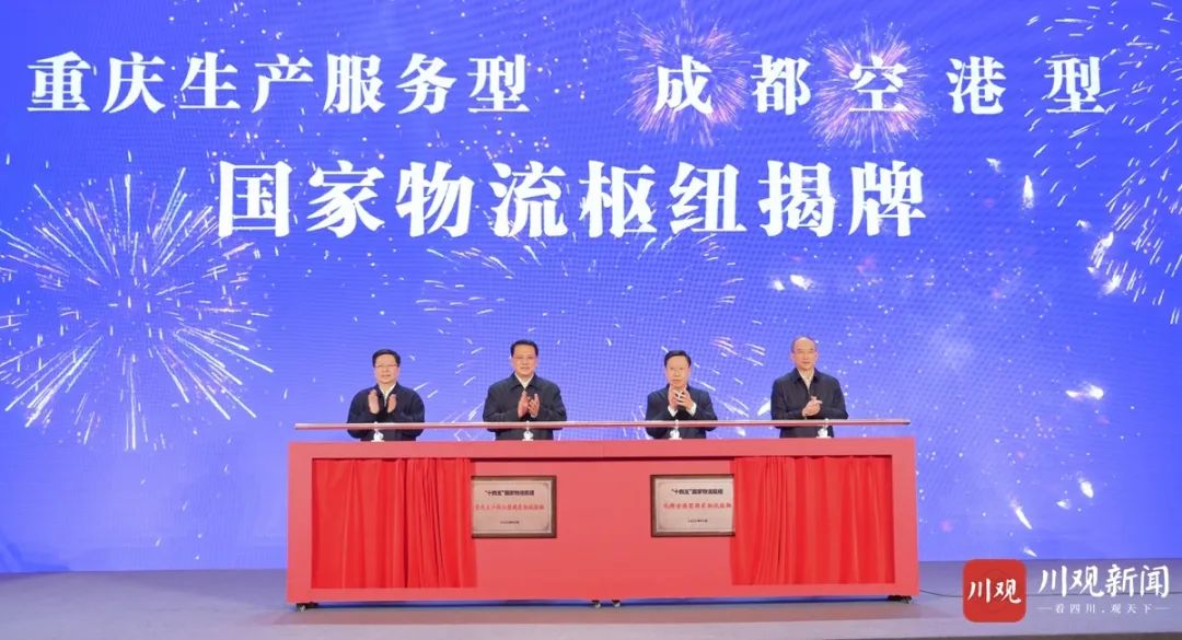会前,双方举行了川渝共建改革开放新高地推进活动,通过视频连线方式听取了共建世界级机场群、共建对外开放大通道有关项目建设情况汇报,举行了共建西部陆海新通道川渝总运量突破60万标箱发车仪式。活动中,袁家军、王晓晖、胡衡华、黄强共同为重庆生产服务型、成都空港型两个国家物流枢纽揭牌。