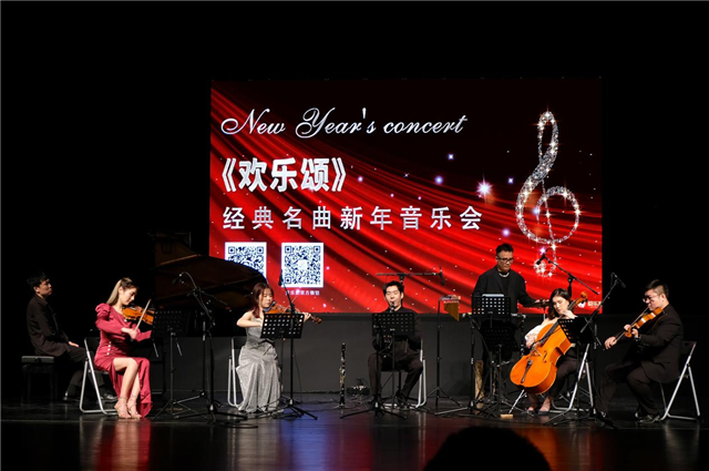 在一片欢乐气氛中,第三场“《欢乐颂》经典名曲新年音乐会”以《欢乐颂》为主题,带给观众如经典乐曲“欢乐颂”中表现的优雅和愉悦之感。演出现场,乐团奏扬着土耳其进行曲等经典名曲,一串串曼妙的音符承载着一段段美好的往事。在爱乐汇轻音乐团的音乐中重温《西班牙斗牛士进行曲》《卡门序曲》《彩云追月》《查尔达什舞曲》等众多大家耳熟能详的世界经典名曲音乐,聆赏绚丽音乐篇章,在现场与优美乐音来一场浪漫的邂逅,把时光交予艺术。