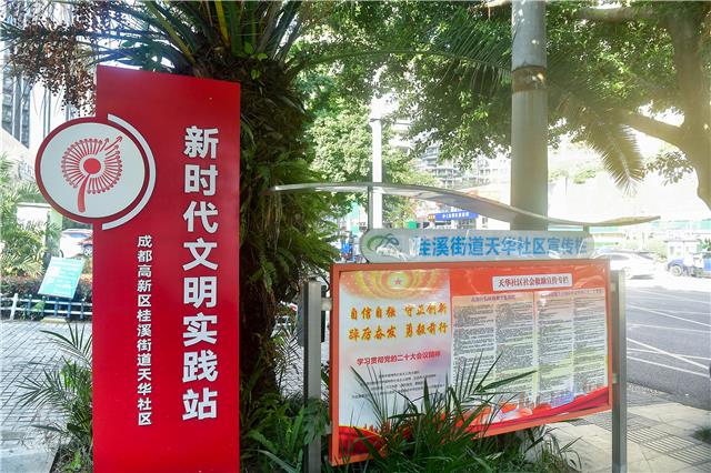 外增“颜值”、内练“气质”,推进文明典范城市创建也成为社区发展治理的一个重要抓手。“日常主要在社区周边设置点位,为公园里活动的居民们提供帮助,同时在社区里进行文明劝导,开展社区环保、科普宣传、社区治安等志愿服务活动。同时,利用辖区各院落宣传栏、LED电子显示屏、微信群等宣传媒介,多角度开展宣传,在辖区主次干道投放熊猫造型的不同内容的公益广告,无形中去影响市民,达成创建共识。”天华社区党委委员、居委会副主任李姝莉表示,全社区加入到文明典范城市的创建和维护中,也更好地引导社区居民友爱互助、保护社区环境。