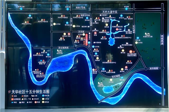桂溪街道天华社区位于成都核心区域的核心地带,包含11个小区、2所学校、3个公园、4个软件园区及世纪城国际展览中心,共有企业约808家、商铺213家,共计服务人口约7万人,其中企业员工占比71%,是一个正在飞速发展中的国际化社区。