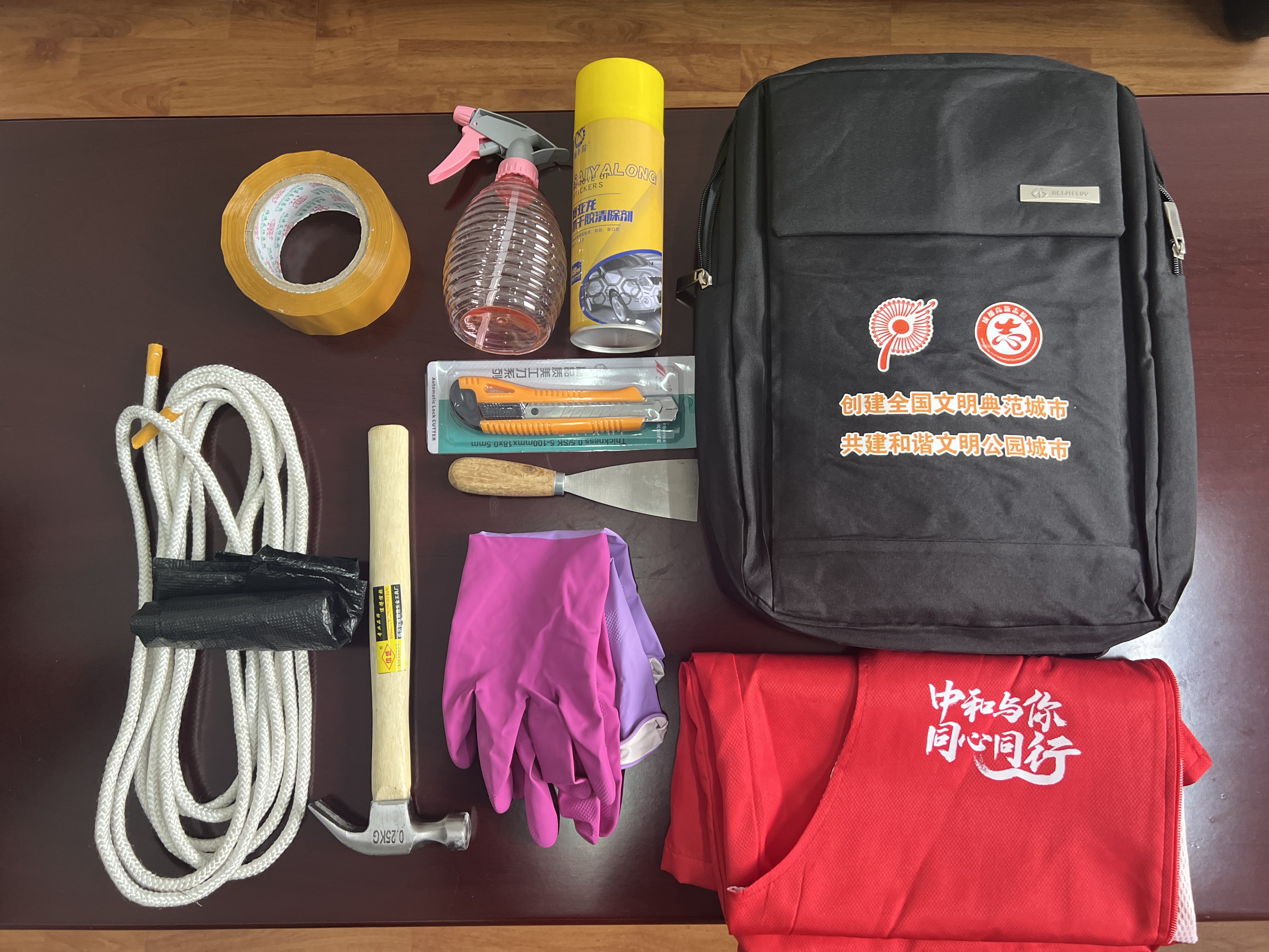 手套、锤子、遛狗绳、清洁剂、美工刀、螺丝刀……这些创城工作中会用到的小工具,“文明百宝箱”里应有尽有,除此之外,还装有文明典范创建民生实事清单、城市宣传海报,在维护城市环境卫生的同时,随时展开文明典范城市宣传工作以及文明劝导工作。“工欲善其事,必先利其器”,为进一步推动创建全国文明典范城市工作,更加高效及时的完善创城细节,提高工作效率,2月13日,中和街道“文明百宝箱”正式上线。