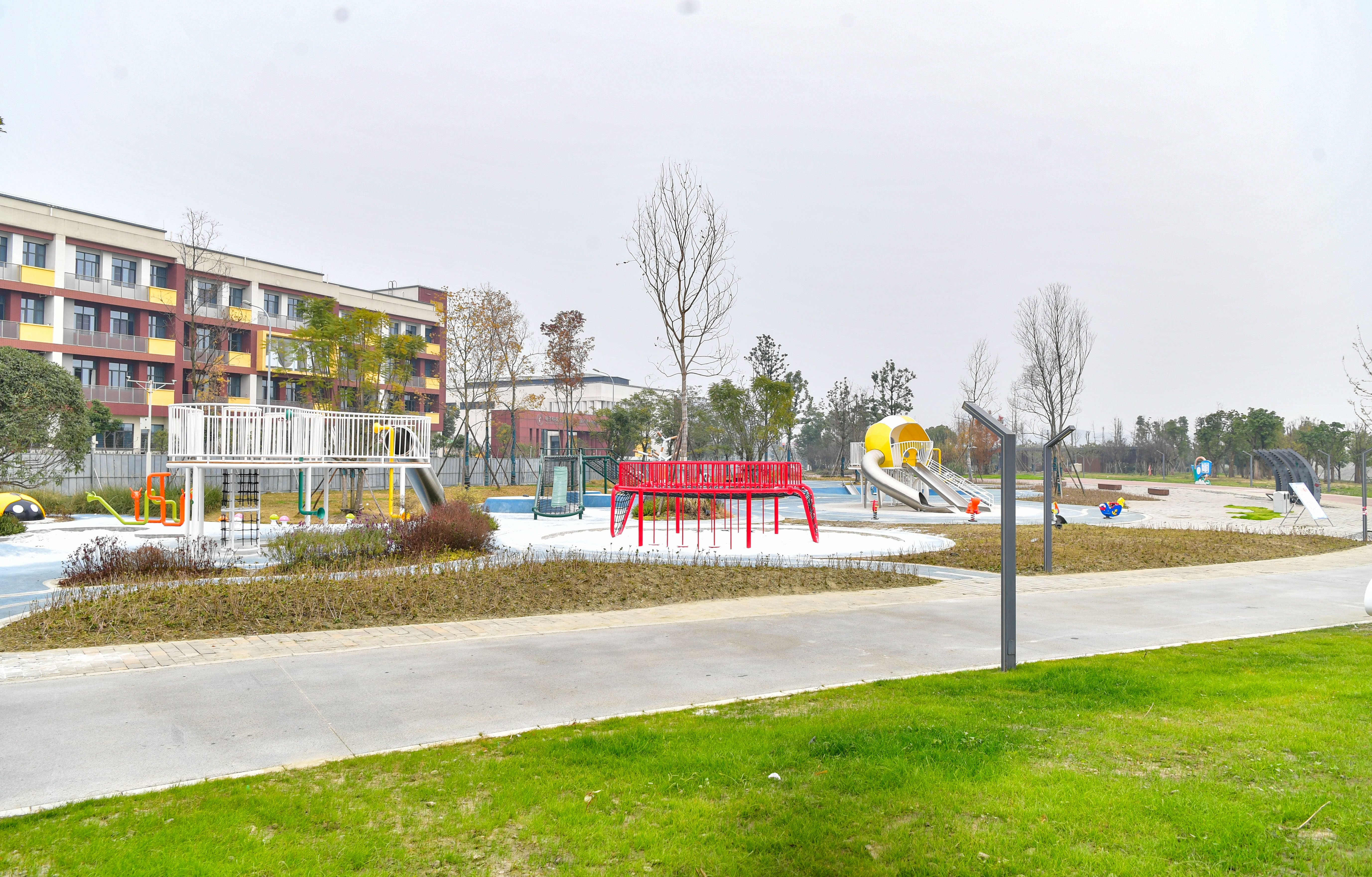 与生态绿道相辅相成,在清水河畔,一批公建配套项目也陆续完工投用。成都高新区云芯幼儿园在2023年秋天迎来了第一批入学的孩子们。这所引入了嘉祥英卓恩教育资源的幼儿园占地面积6.12亩,共设有9个教学班,园区内拥有芯悦图书室、芯想拓展室、芯赏艺术室、芯动音乐厅、芯享生活馆以及芯然生态园等多种童趣灵动的活动区,丰富多彩的区域不仅提供了多元化的学习机会,还让孩子们在玩乐中发现无限的创造力和好奇心。