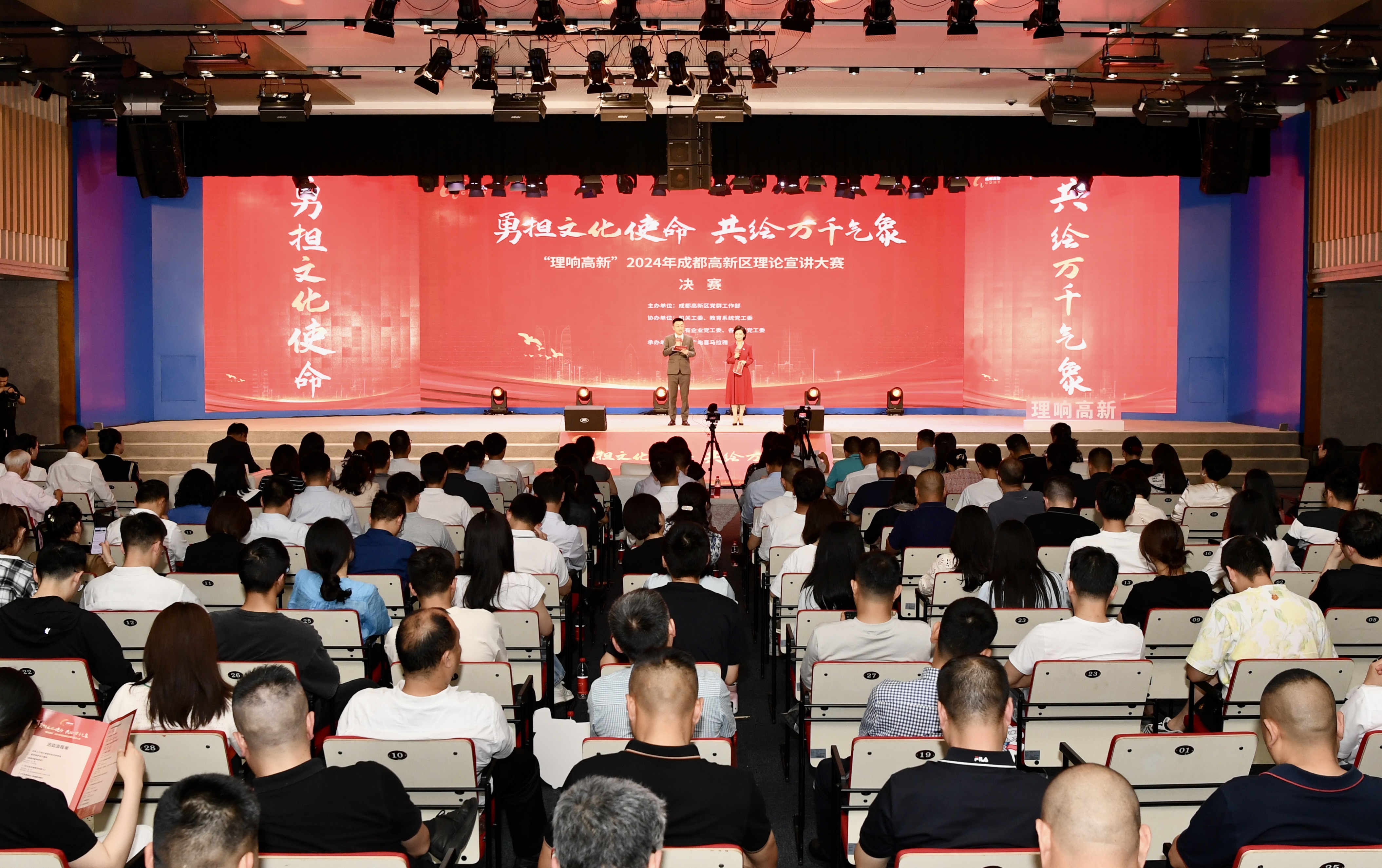 为充分挖掘辖区基层优秀宣讲人才,推动理论宣讲“飞入寻常百姓家”,5月16日,“勇担文化使命,共绘万千气象”——“理响高新”第一届基层理论宣讲大赛决赛在成都高新区菁蓉汇打响。来自机关、街道、企业、学校的15组参赛选手们同台竞技,通过表演式、互动式、沉浸式、情景式宣讲,谈感悟、论初心、讲收获,充分展现成都高新区干部群众奋发有为的精神风貌,激励引导全区党员干部群众感恩奋进、勇毅前行,奋力谱写中国式现代化万千气象的高新篇章。