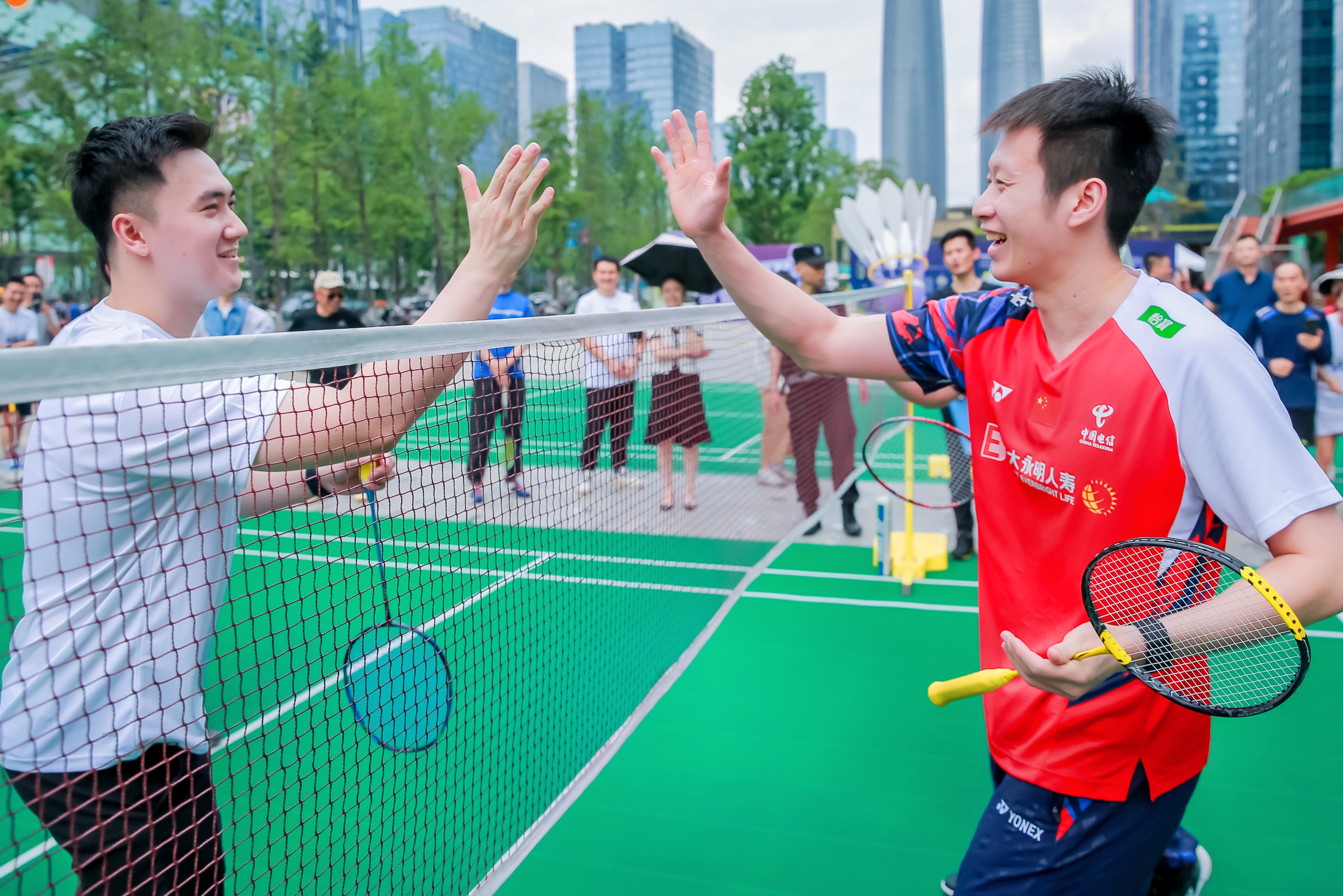 在成都高新区交子音乐广场,国羽冠军们与市民共同参与了趣味游戏,体验了VR羽毛球与体感羽毛球机,并与市民进行友谊切磋,还赠送了签名球衣。一位来自成都高新区石羊街道的市民激动地说:“刚刚和国羽冠军们一起玩游戏、打友谊赛、合影,十分愉快,祝愿他们在以后的职业道路上越走越好!越来越棒!”