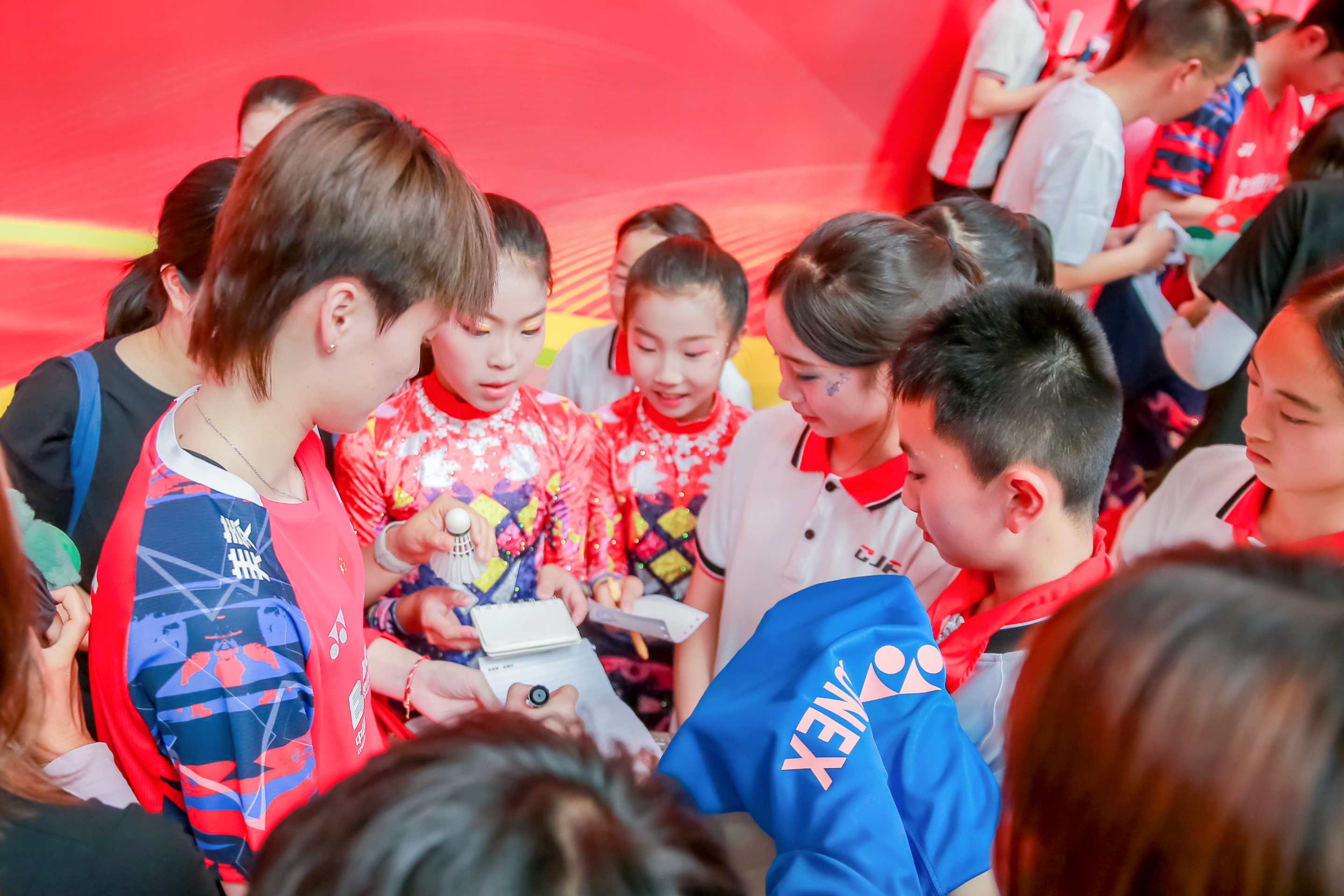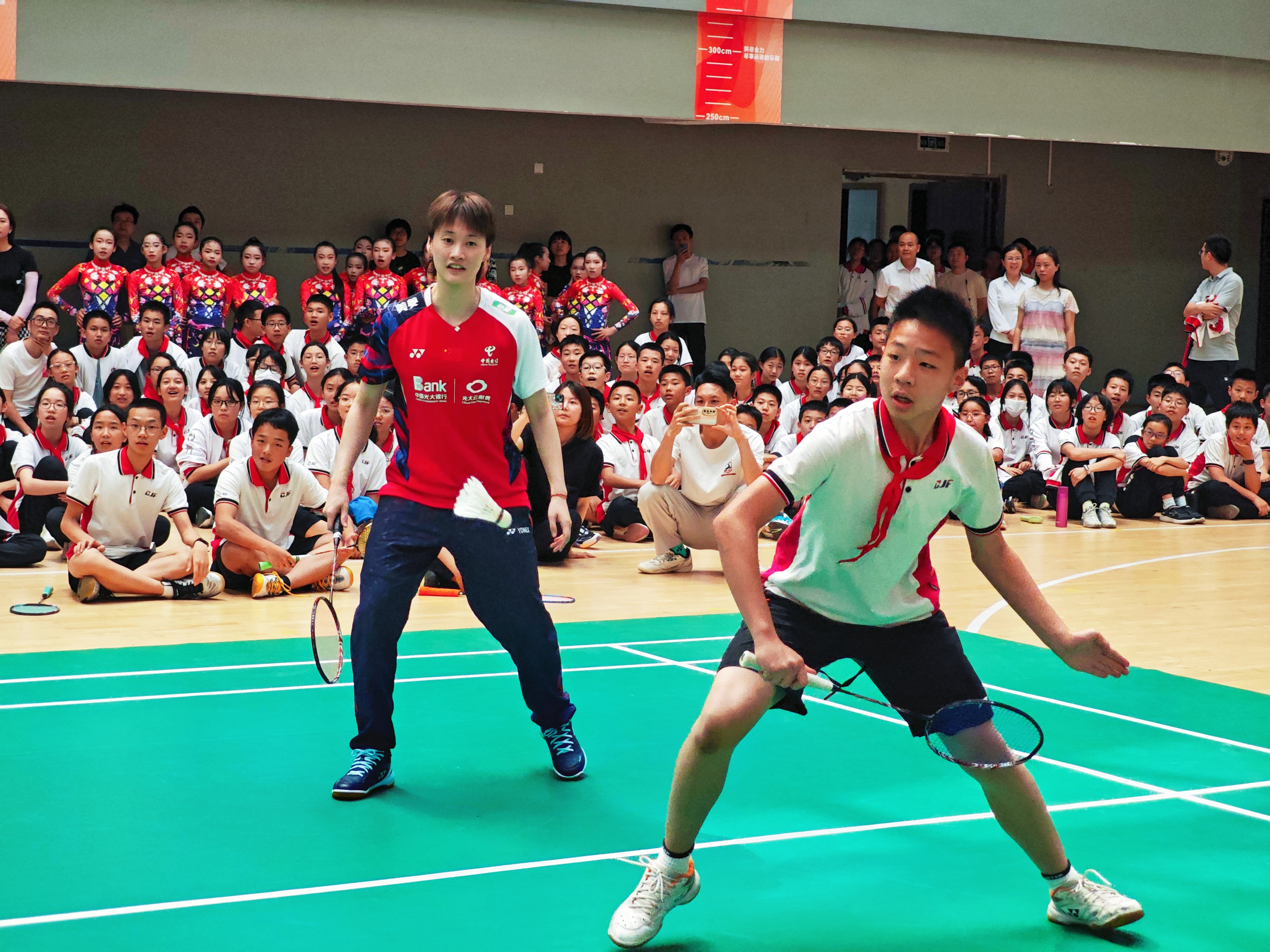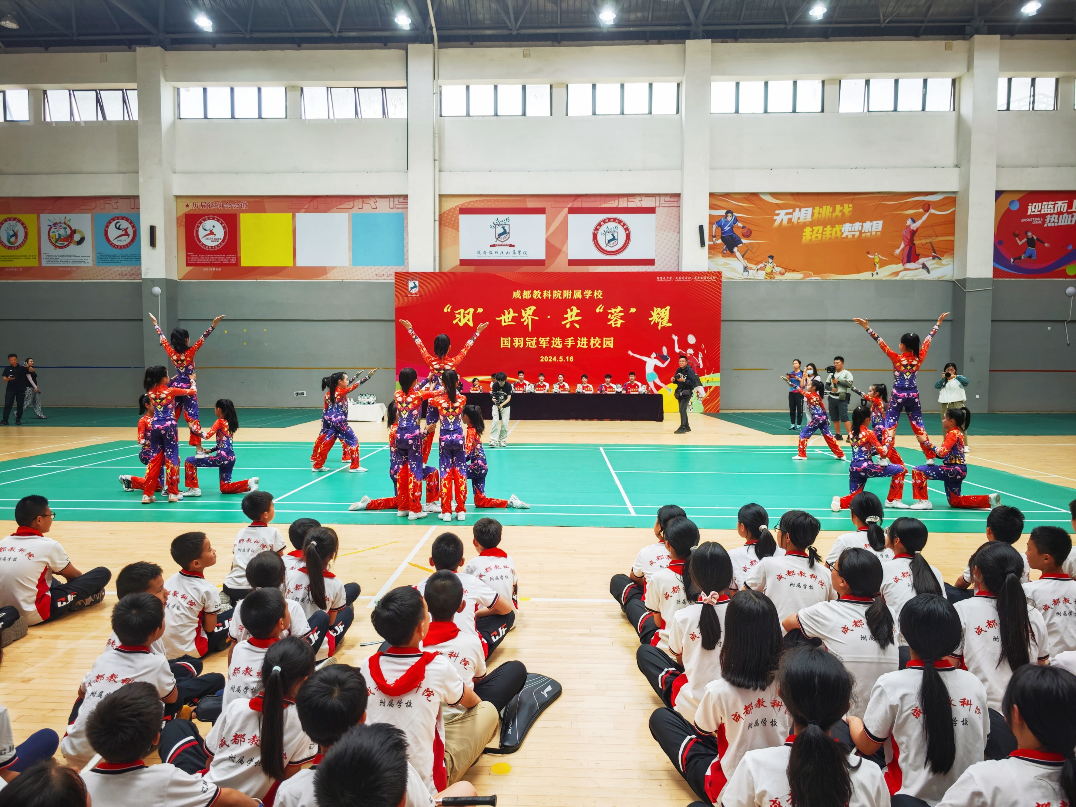 当天活动中,国羽冠军们还前往成都市教科院附属学校,与在校师生进行互动交流。他们现场教学,传授了羽毛球的击球技巧和训练方法;现场还与小球员们进行了一次互动对打和羽毛球知识问答,并向学生们赠送了附有签名的羽毛球。