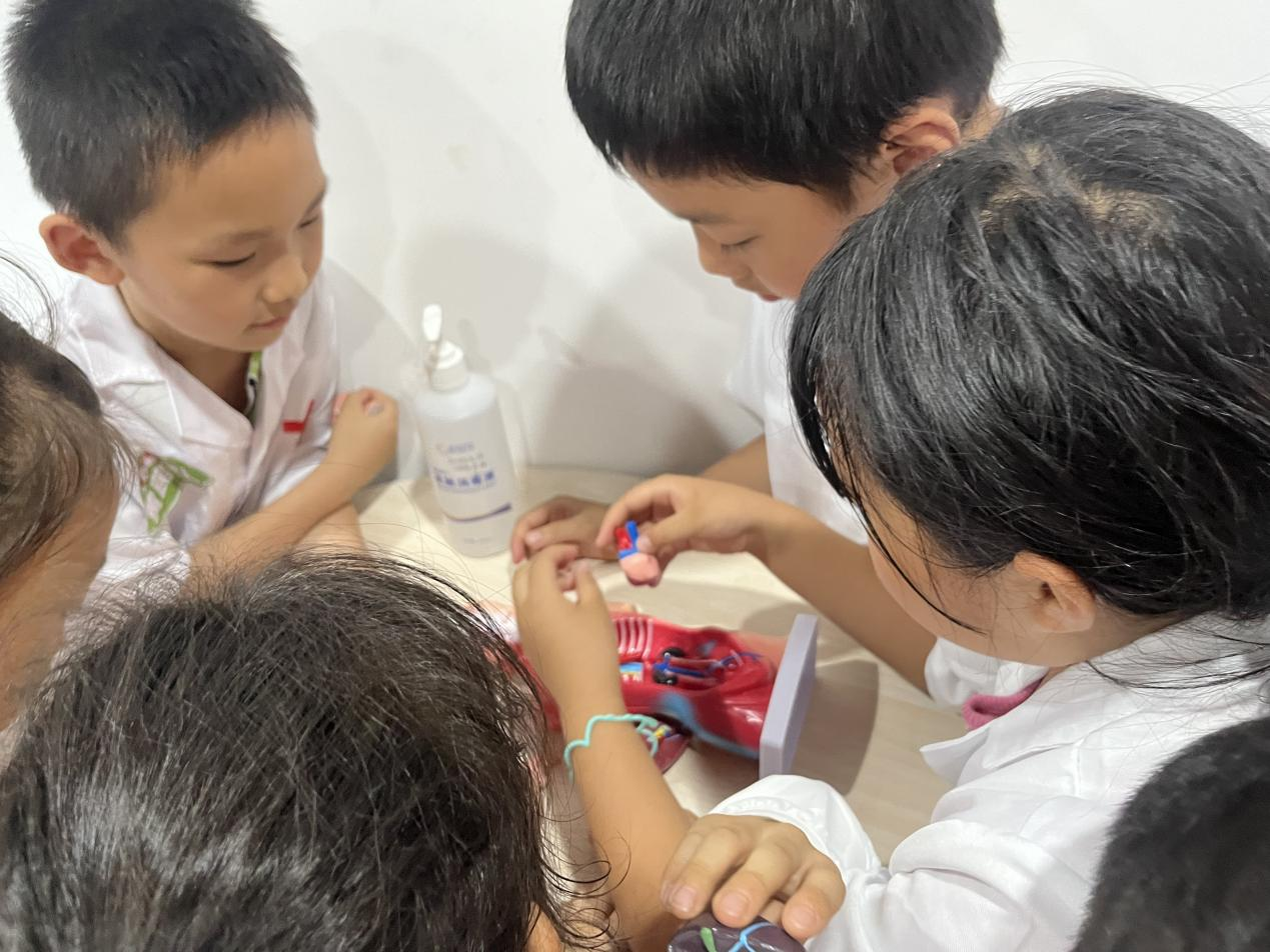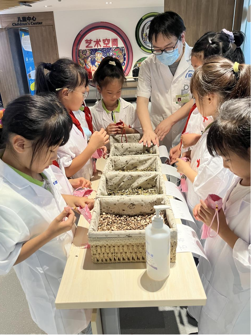 在健康之旅的“人体解剖模型”认识环节,孩子们被这个话题深深吸引。健康副校长和家医团队借此机会向大家介绍了人体各个器官的形态、位置及其功能,以及它们是如何协同工作保持身体正常运转的。在轻松愉快的氛围中,学生们对人体结构的奇妙有了更深地了解。此外,在认识中药环节,学生们通过望、闻、问,认识了许多中药材的名称和功效,并亲手制作了香囊,不仅亲身感受到中药的独特魅力,也加深了对中医药文化的理解和认识。