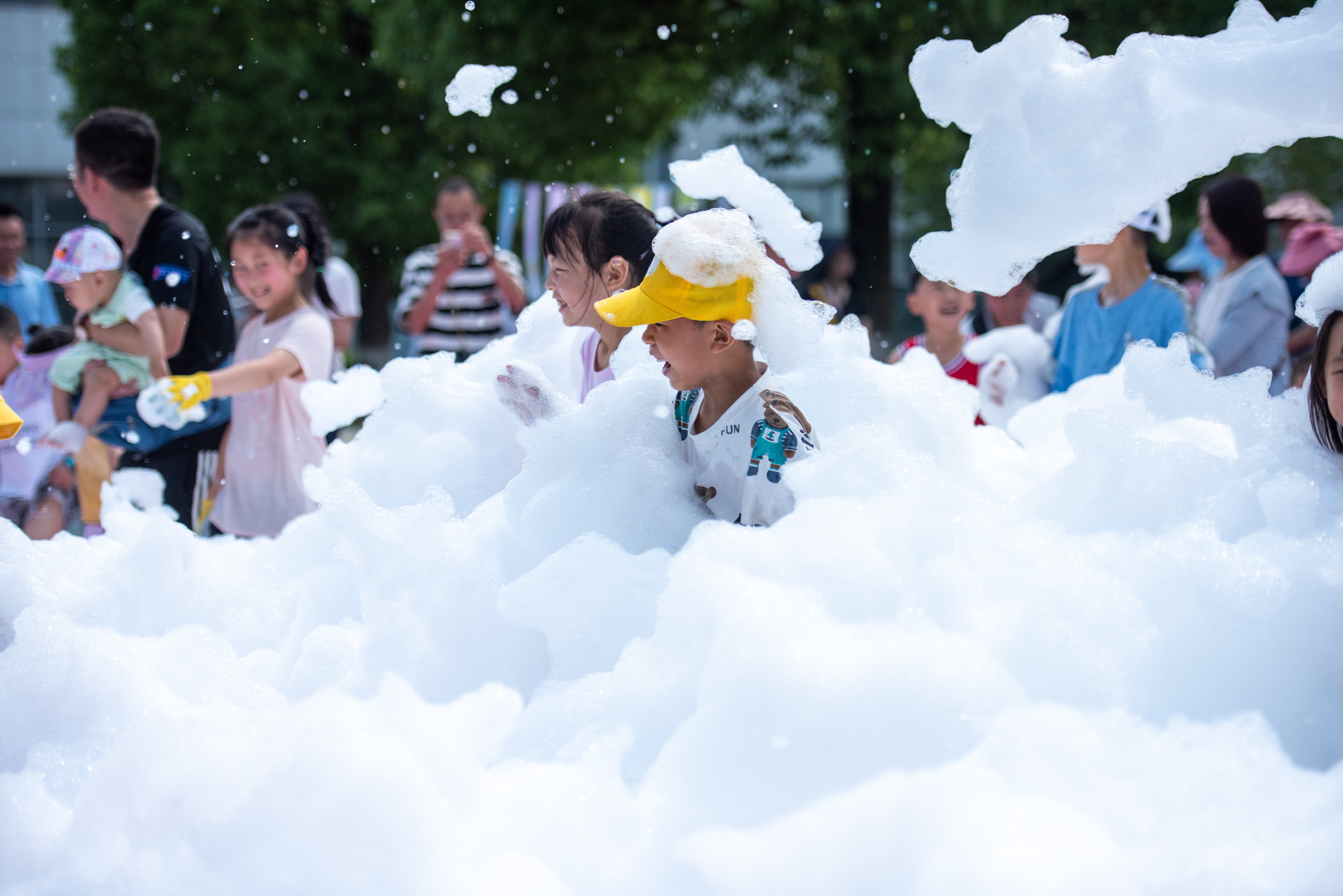 除了游戏环节外,现场还设置了“充气城堡”“一起‘趣’露营”“泡沫一夏”“小丑吹气球”等互动体验区。在欢快的音乐声中,欢呼声、尖叫声、笑声交织在一起,现场氛围充满着温馨与欢乐。“社区开展的此类活动不仅强化了社区与企业之间的纽带,还让员工们得以在繁忙工作之余,与孩子们共度温馨惬意的周末时光。”企业工会相关负责人说。