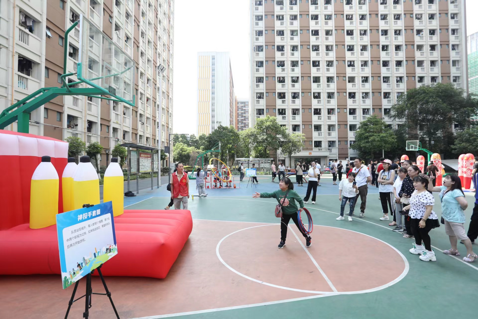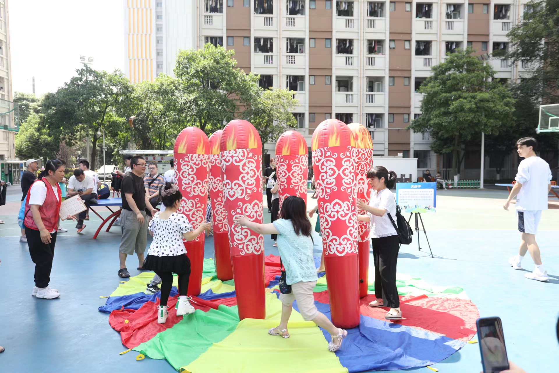 运动会现场设置了“投掷沙包”“神投手套圈”“愤怒的小鸟”“合力投篮”“火炬手”等趣味游戏,现场残疾人职工、居民踊跃参与体验。他们在一次次投掷中获取经验,互相传授“秘诀”,化身为一个个“神投手”“神射手”。“一二三,一起用力!”在多人运动中也共同努力,肆意挥洒汗水,呈现出辖区内居民蓬勃的活力与团结一致的凝聚力。