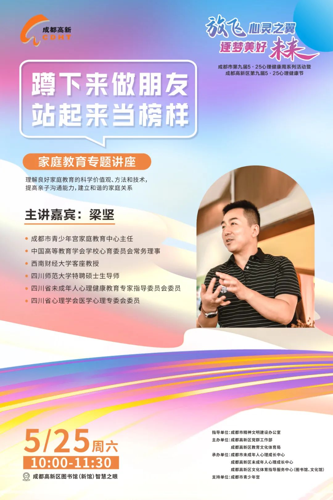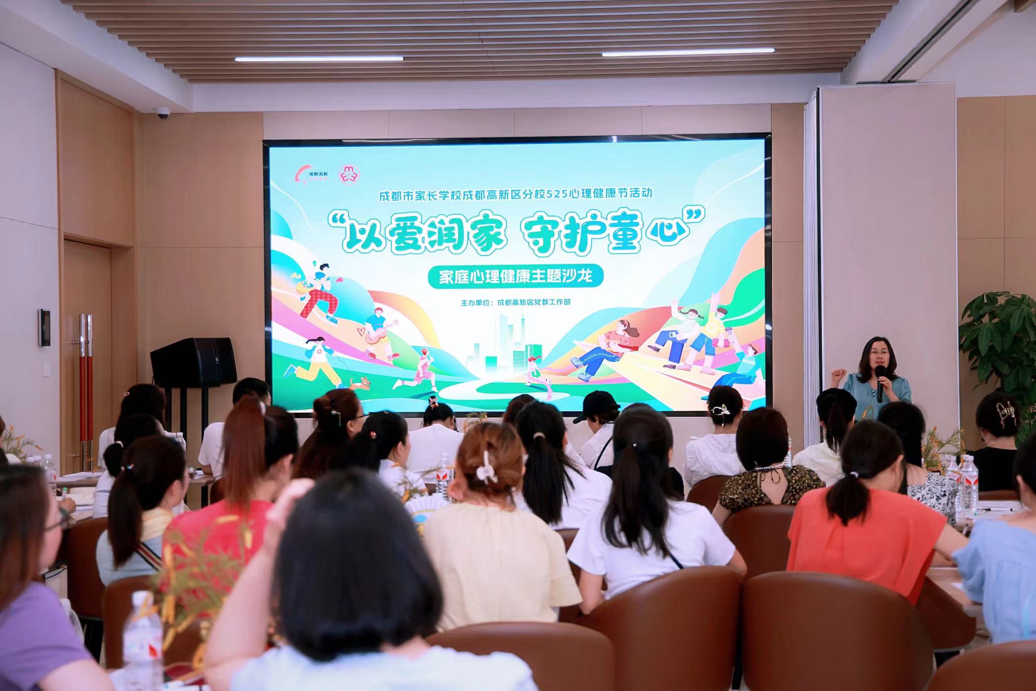 在“5·25”心理健康节来临之际,5月24日,成都市家长学校成都高新区分校525心理健康活动之“以爱润家 守护童心”家庭心理健康主题沙龙在成都高新区工青妇活动中心举行。