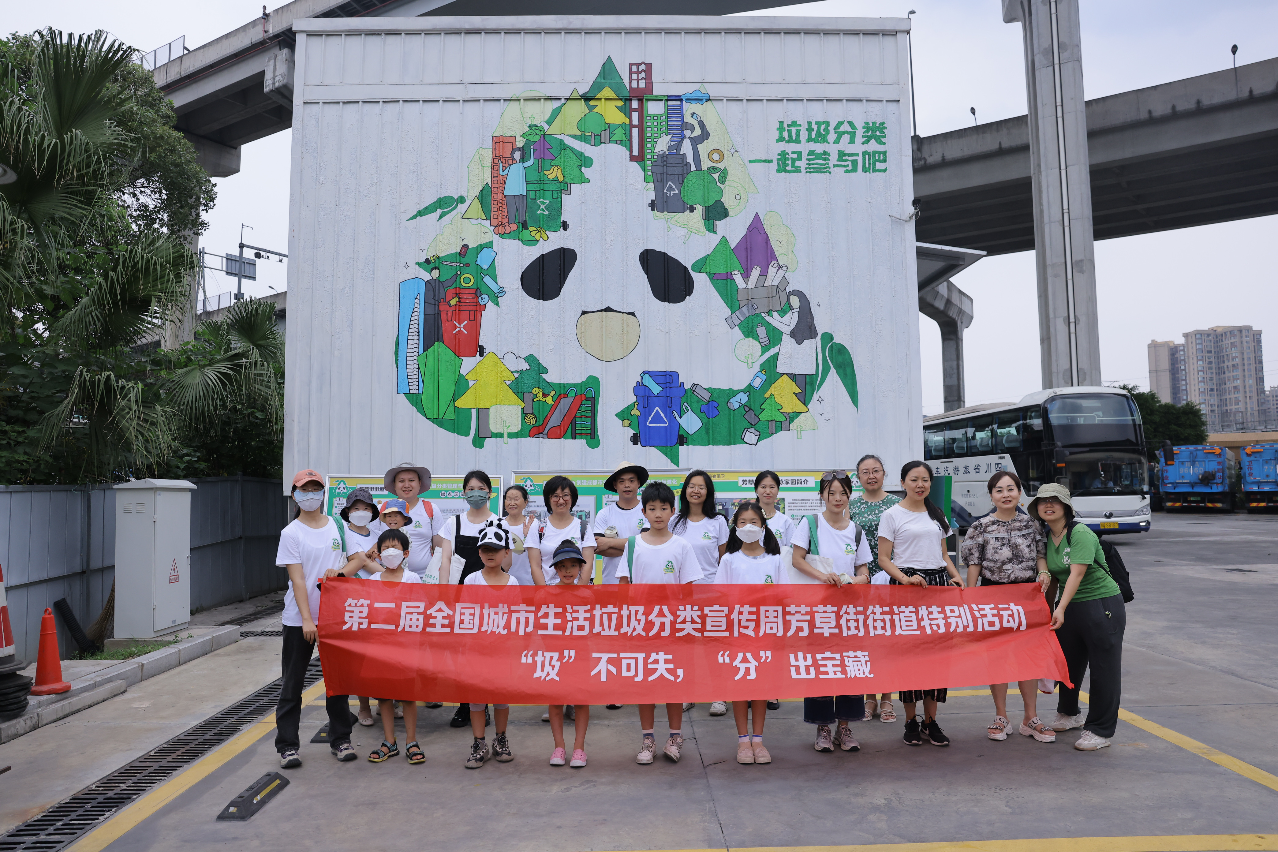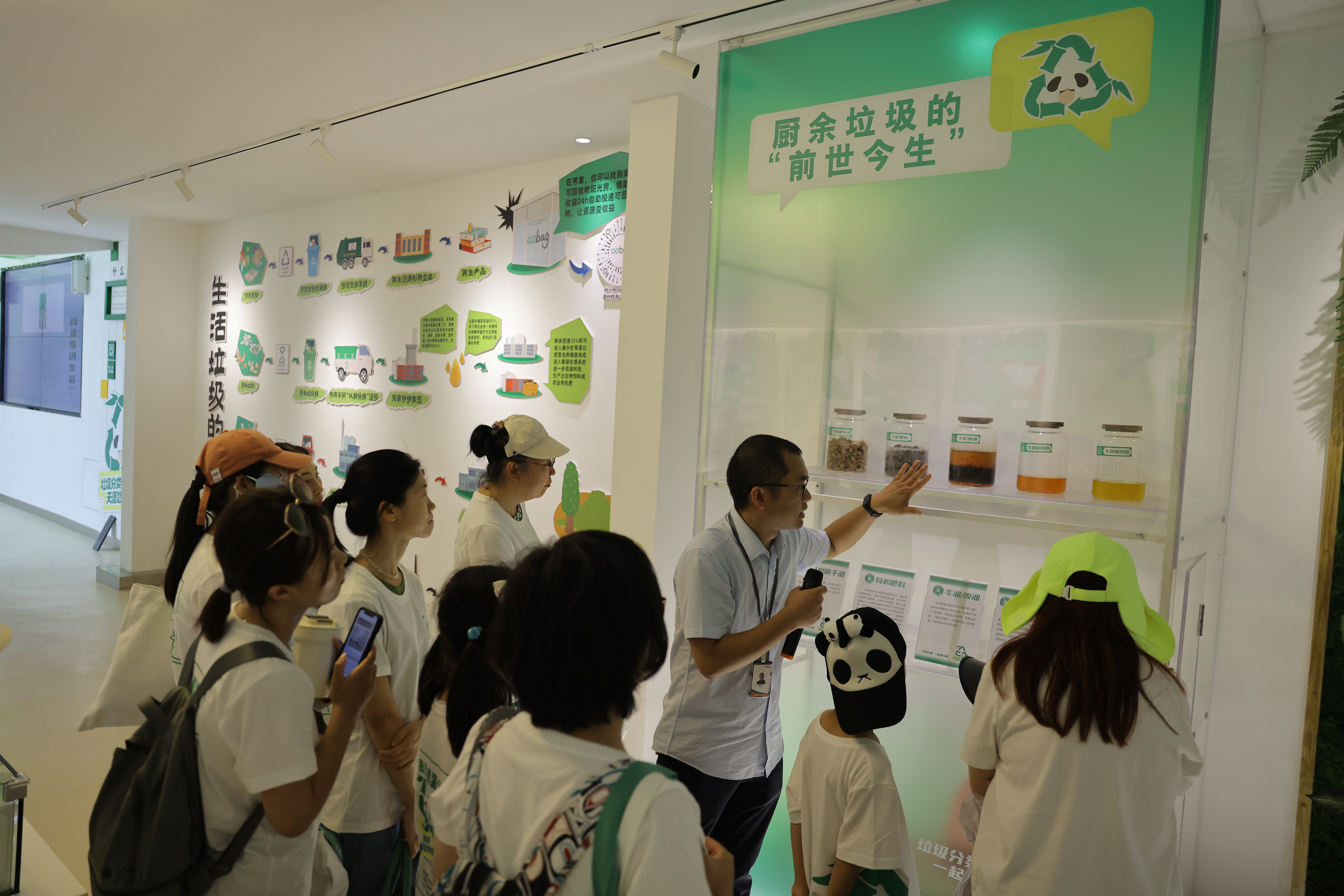 活动第二部分从参观芳草静脉家园开始。作为芳草街街道垃圾分类处置一体化中心,静脉家园主要由厨余垃圾处理区、其他垃圾中转压缩区、有害垃圾贮存区、可回收物暂存区以及垃圾分类科普教育馆、办公区域共六大区域组成,同时具备了垃圾分类收集、分类贮存、分类处理及垃圾分类科普教育功能。在工作人员和志愿者的讲解下,参观者可以清晰地看到四类垃圾在芳草街街道是如何进行投放、收运以及这些垃圾进入到后端进行资源循环的过程。