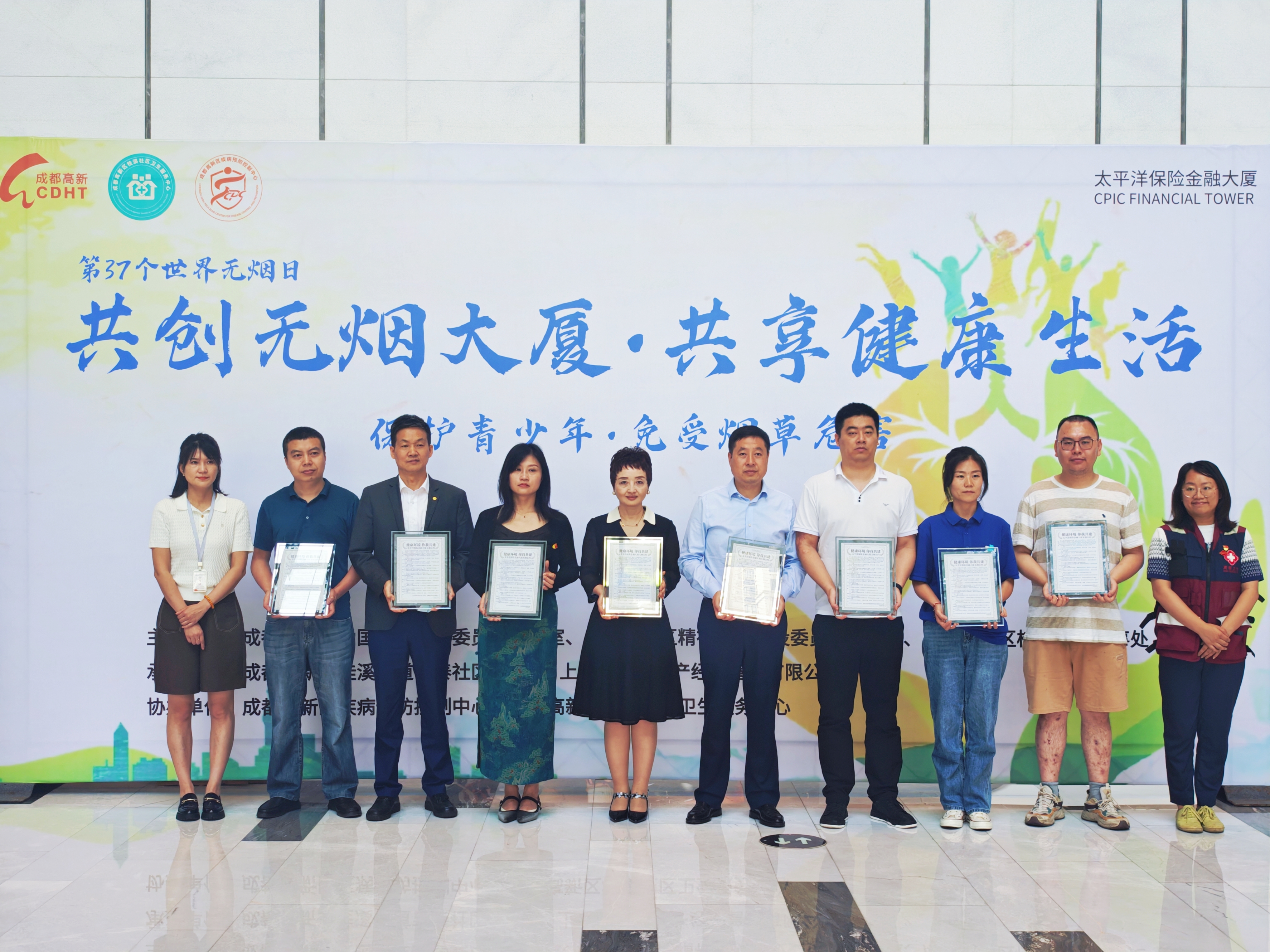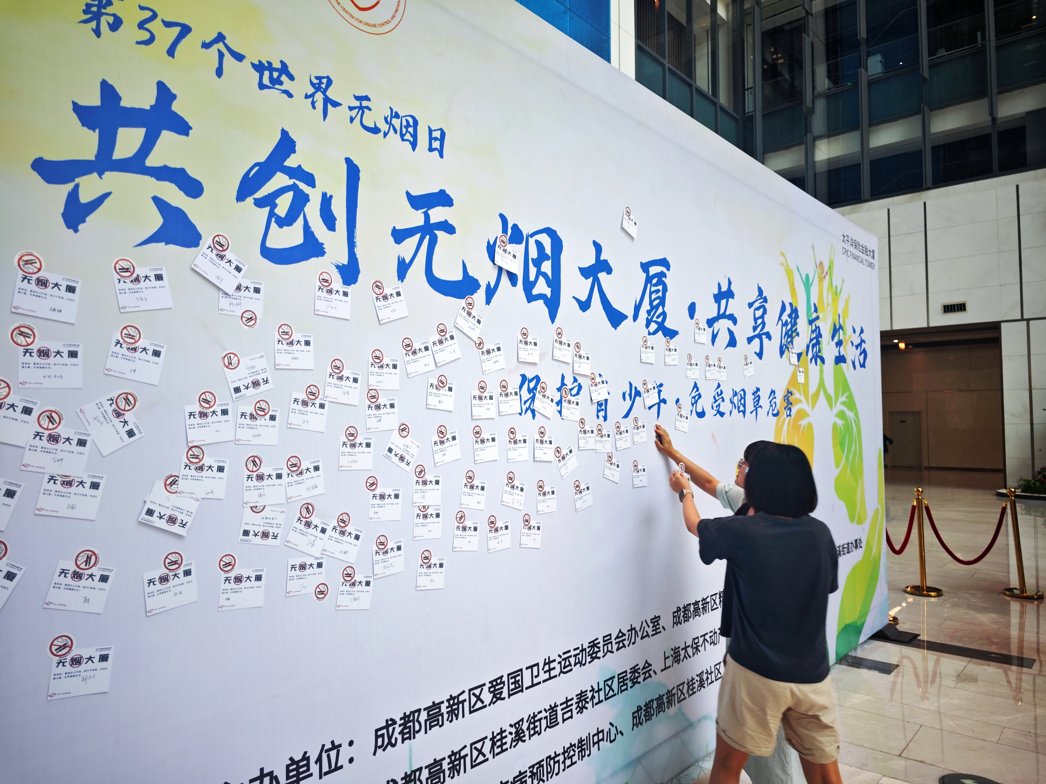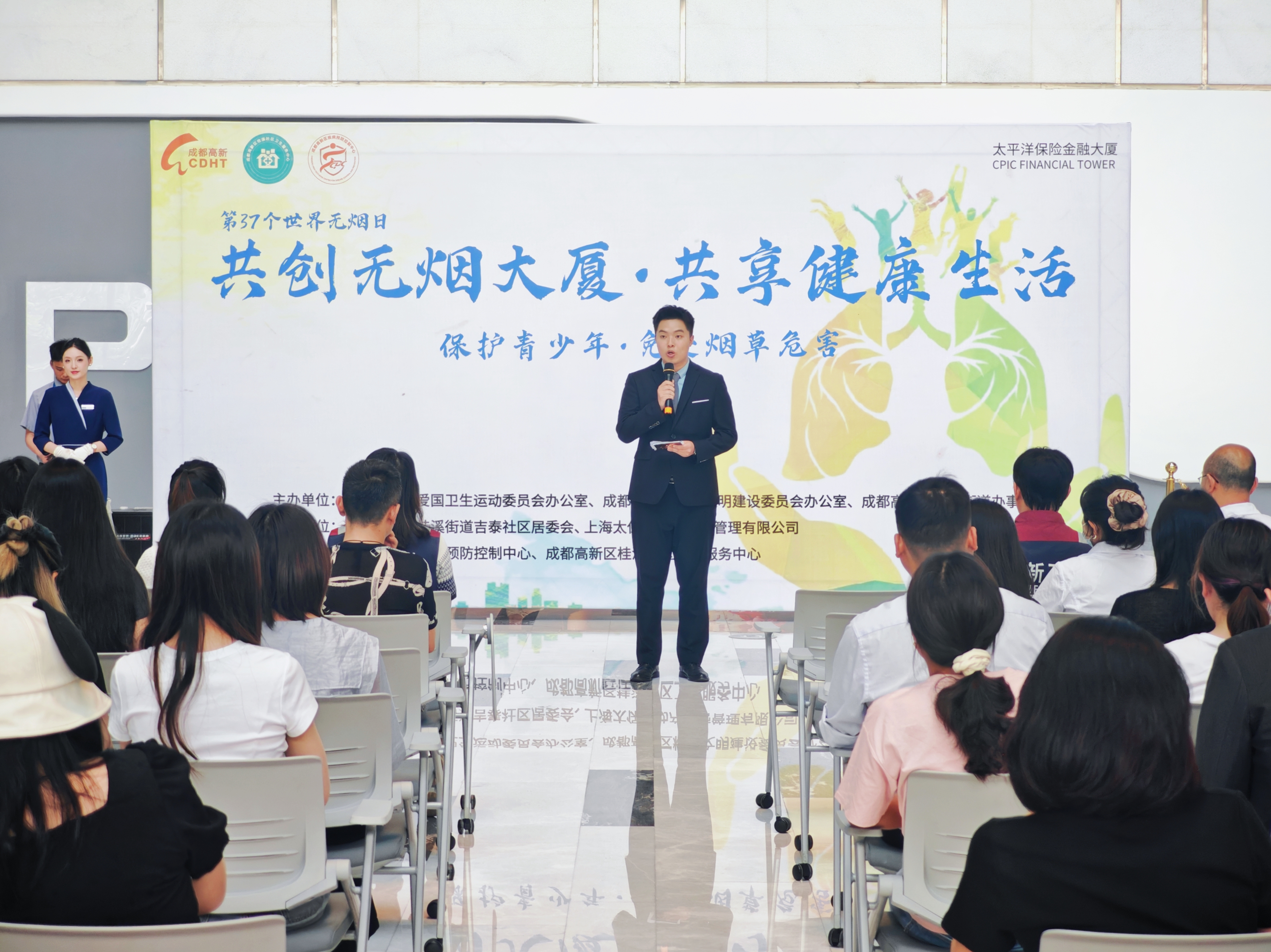 为进一步提高全民文明健康意识,持续巩固无烟环境建设成果,保护青少年免受烟草危害,共建绿色环保文明健康生活方式,5月31日,由成都高新区爱国卫生委员会办公室、成都高新区精神文明建设委员会办公室联合桂溪街道、成都高新区疾病预防控制中心及桂溪社区卫生服务中心主办的“共创无烟大厦·共享健康生活”第37个世界无烟日宣传活动在太平洋保险金融大厦举行。