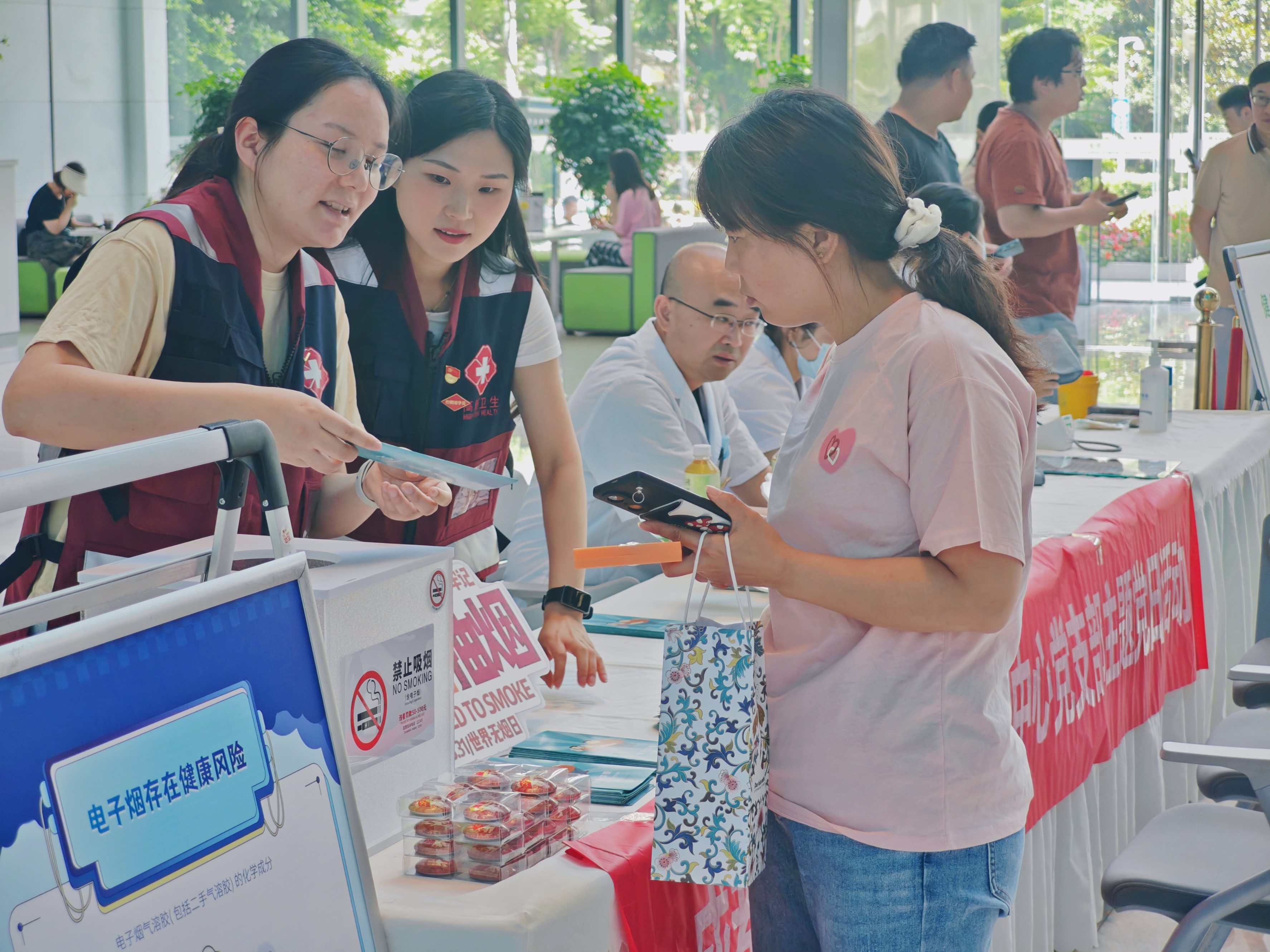 活动现场还开展了签署无烟宣言、以烟换物等丰富精彩的活动,吸引职工们在签到处领取“无烟大厦”卡片,并在卡片上签下自己的名字,以示对控烟行动的支持。在健康咨询区,成都高新区疾病预防控制中心、桂溪社区卫生服务中心的医务人员为企业职工提供戒烟健康咨询、血压血糖检测以及家庭医生签约等服务。