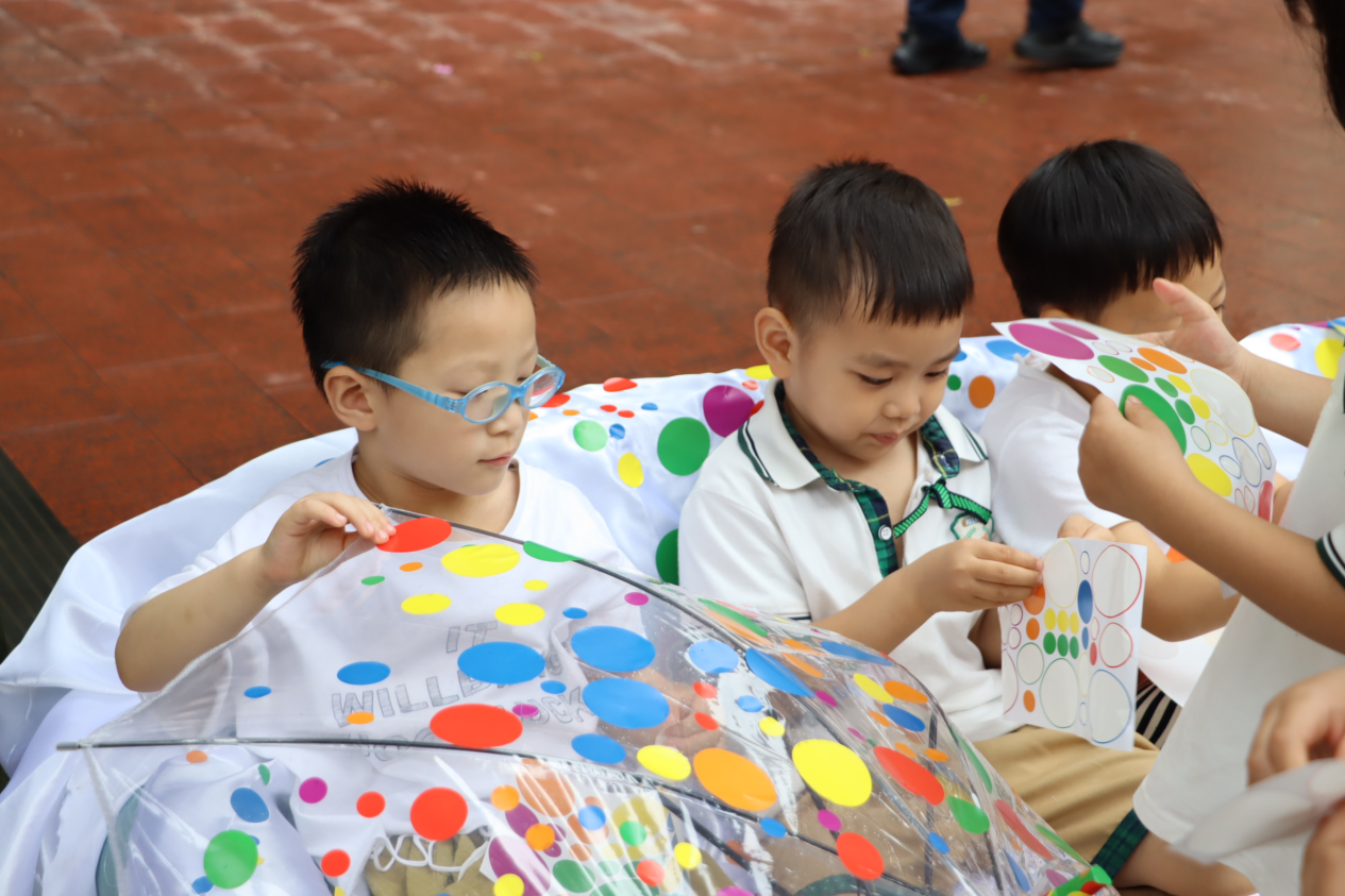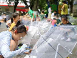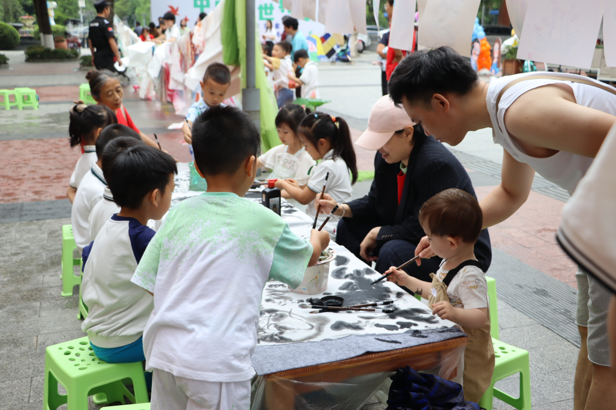 活动现场,创意集市为孩子们带来了一场独特的艺术文化体验,推动传统文化传承。孩子们在这里自由发挥,根据提供的各种材料和工具进行手工创作,如制作小礼品、装饰品等,充分激发创造力和动手能力。此外,活动还邀请水墨画专业画家,给孩子们带来了精彩的中国民间传统的染色工艺,让大家近距离感受传统文化的魅力。