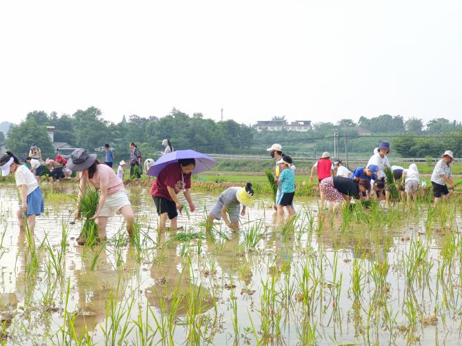 稻田插秧,脚踏实地感受土地的温暖,与千年的农耕文化共鸣。这样的“六一”活动对于城市里的儿童来说格外新鲜有趣。在中和街道新民社区,20组家庭走进农田,体验了一把“插秧”的乐趣。