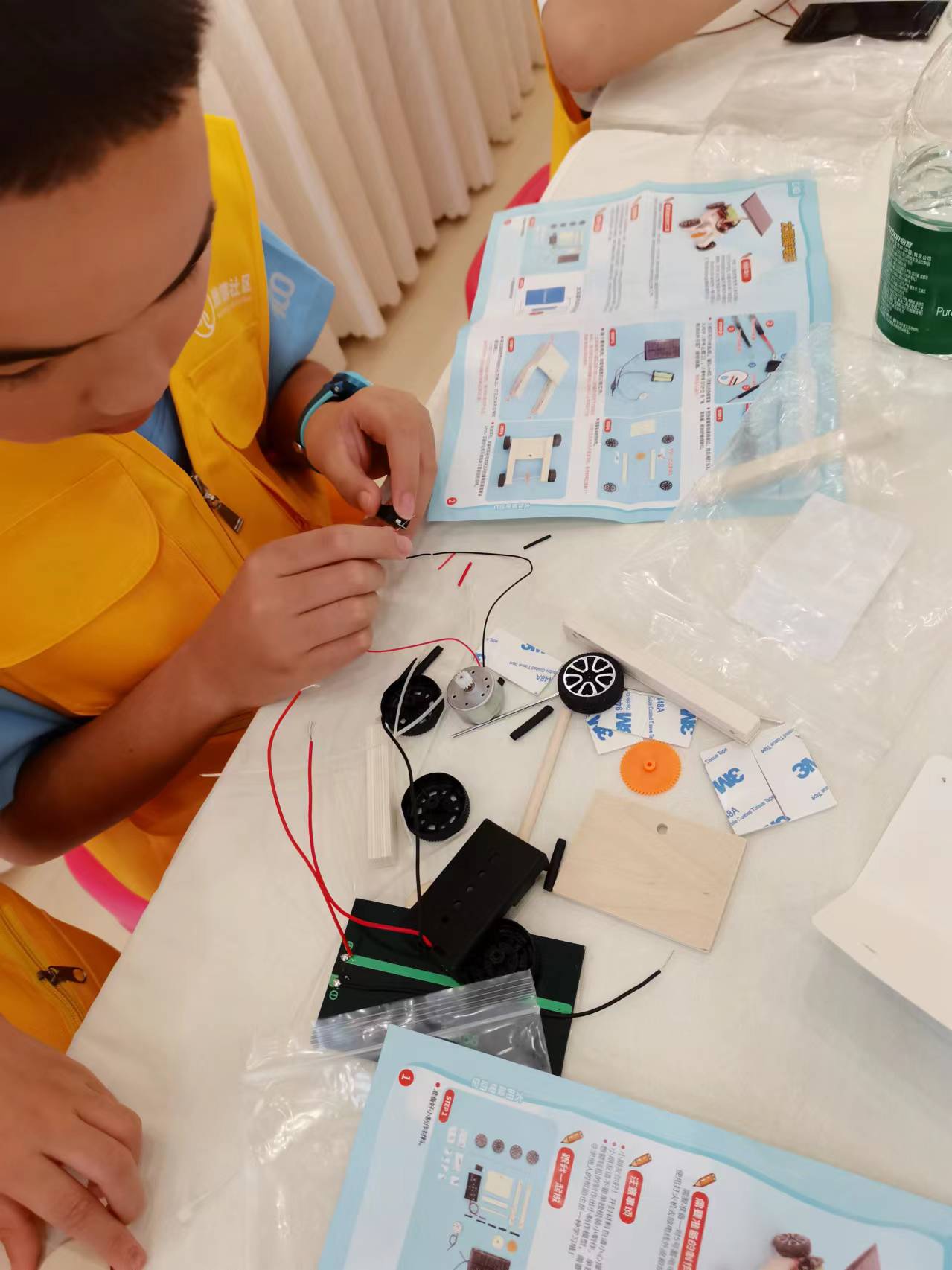 此外,杨文博还准备了太阳能小车制作材料,引导孩子们自己动手进行组装与调试。通过这一系列的实践活动,孩子们在轻松愉快的氛围中深刻感受到了科技的无穷魅力和探索的无穷趣味。现场气氛热烈,不时传来孩子们惊叹与好奇的声音,进一步培养了他们对科技的浓厚兴趣。