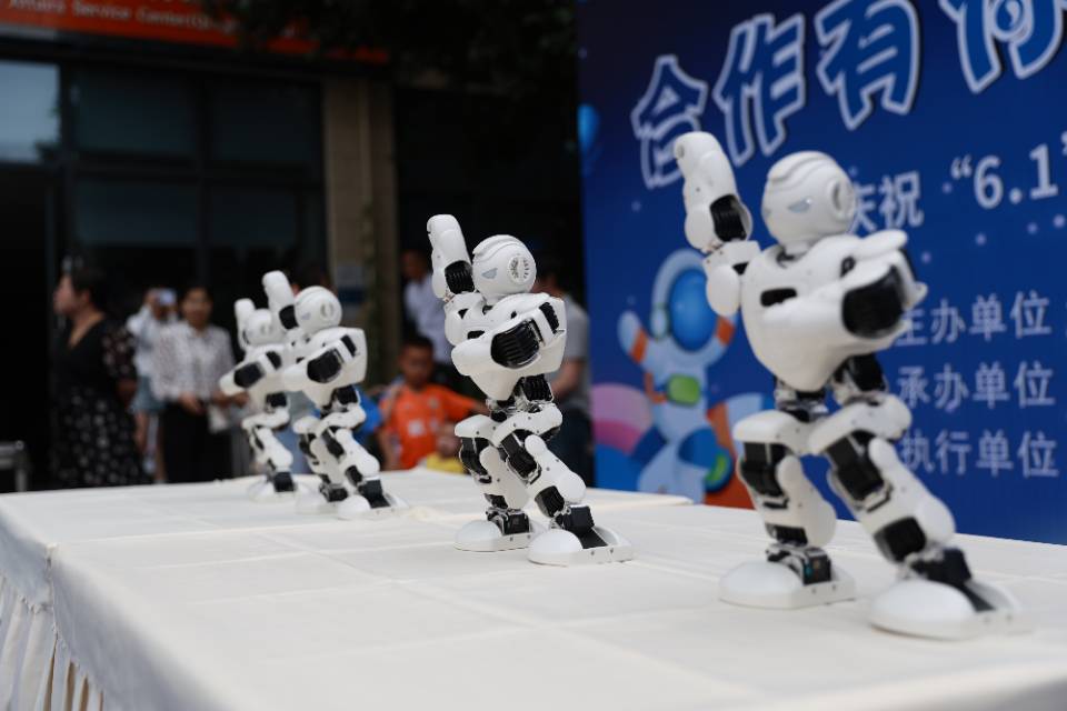 活动在精彩的无人机蜂群表演中拉开帷幕,数十架无人机在空中翩翩起舞,时而组成各种图案,时而变换队形,仿佛一群精灵在空中嬉戏。孩子们目不转睛地盯着这些神奇的飞行器,惊叹不已。机器人舞力对决环节将现场气氛推向了高潮,各显神通的机器人们,时而跳起欢快的舞蹈,时而展示高难度的动作。