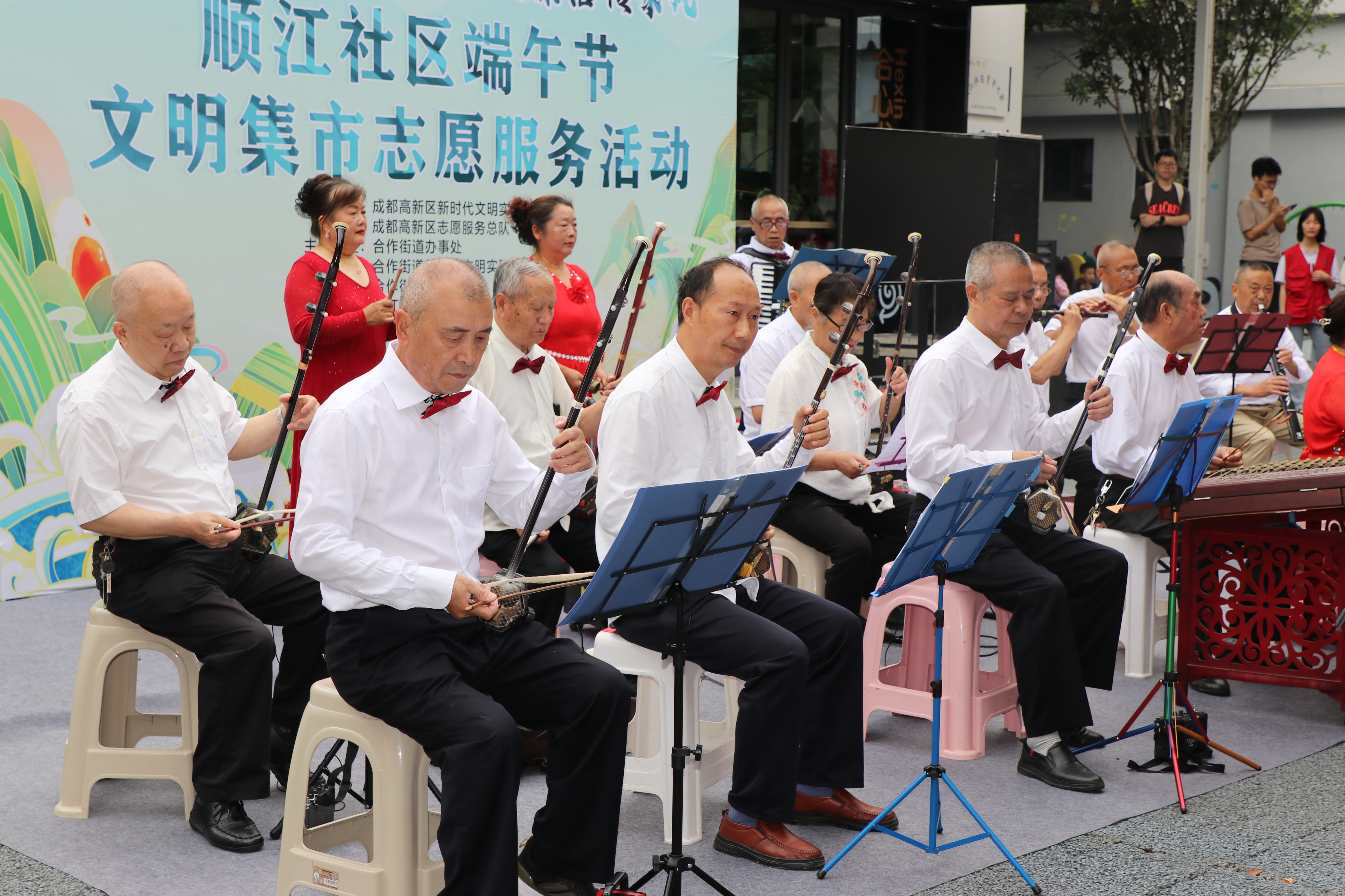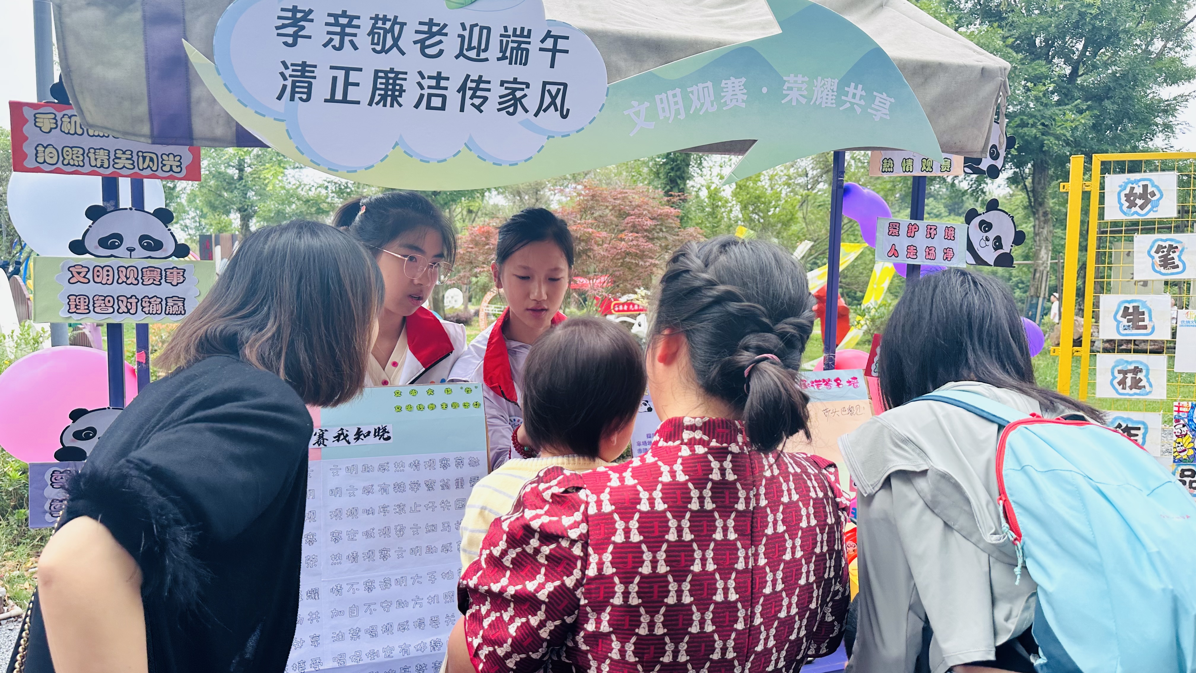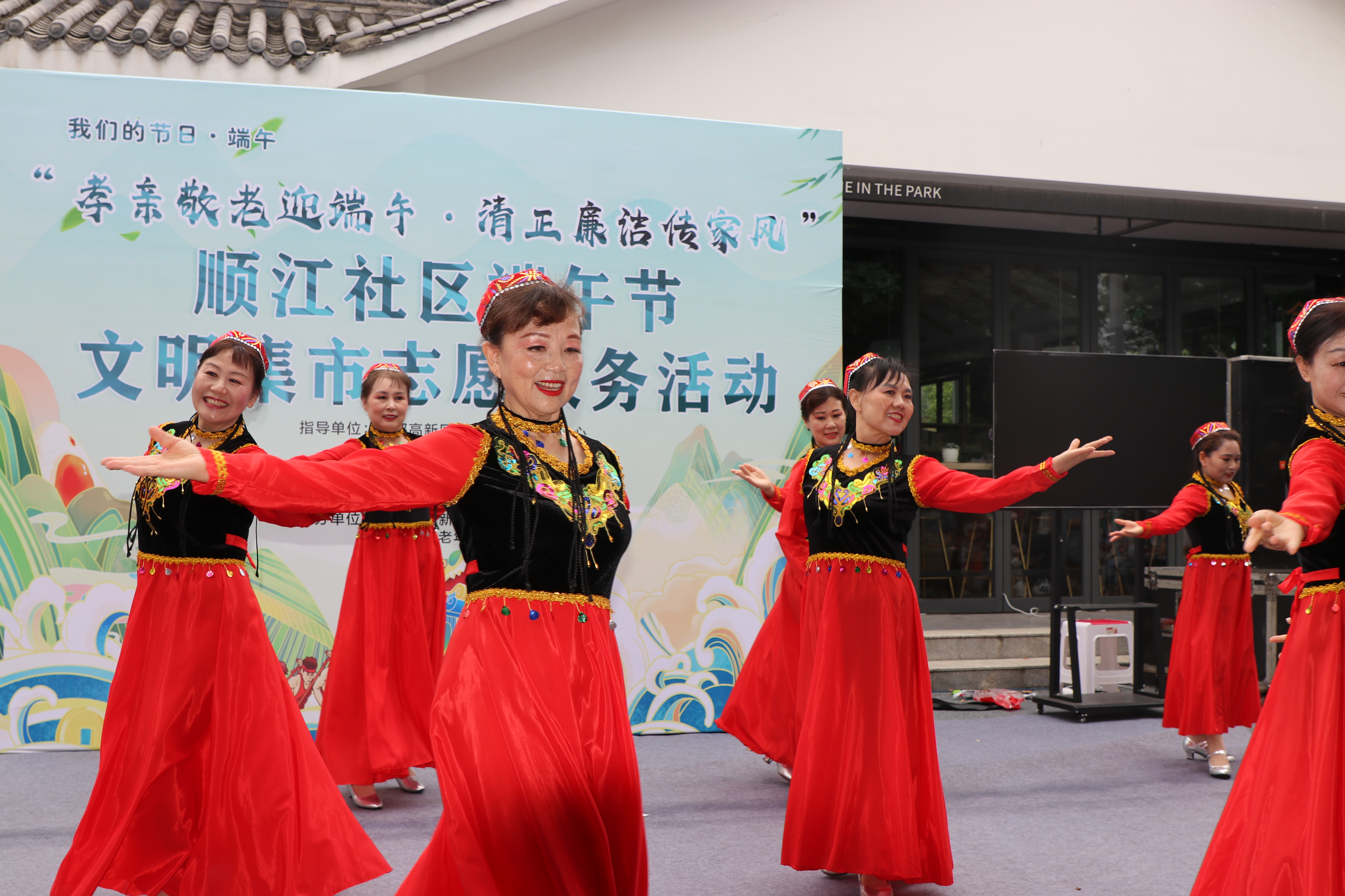 为丰富群众精神文化生活,营造浓厚的节日喜庆氛围,6月2日,由成都高新区合作街道顺江社区新时代文明实践站主办的“孝亲敬老迎端午·清正廉洁传家风”端午节文明集市志愿服务活动在“公园里的家”举行。活动现场分为移风易俗节目展示、文明集市、文明打卡等区域,内容丰富、形式多样,吸引了辖区近200余名群众共聚一堂,共话端午佳节。