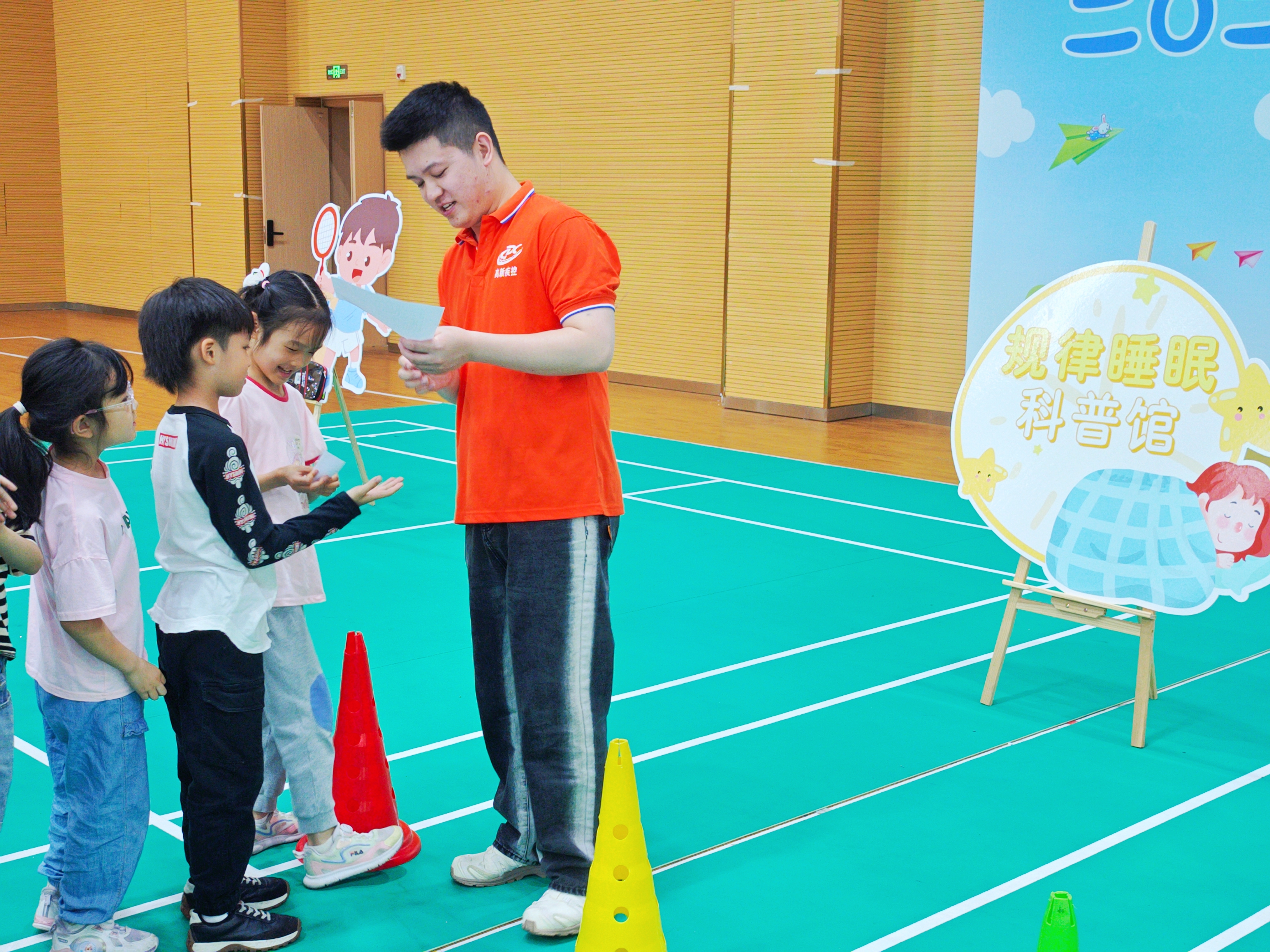 课堂上,工作人员为孩子们展示了原创动画《摘掉“小眼镜” 杜绝“小肚腩”》,并结合其中内容向大家解释“多病共防”的概念,讲解导致学生近视和肥胖的原因,让同学们了解到近视、肥胖的共性病因和预防措施。随后,活动邀请同学们加入游戏环节,从“户外运动体验馆”“规律睡眠科普馆”“健康饮食生活馆”三个场景的互动中加深学生们的理解。
