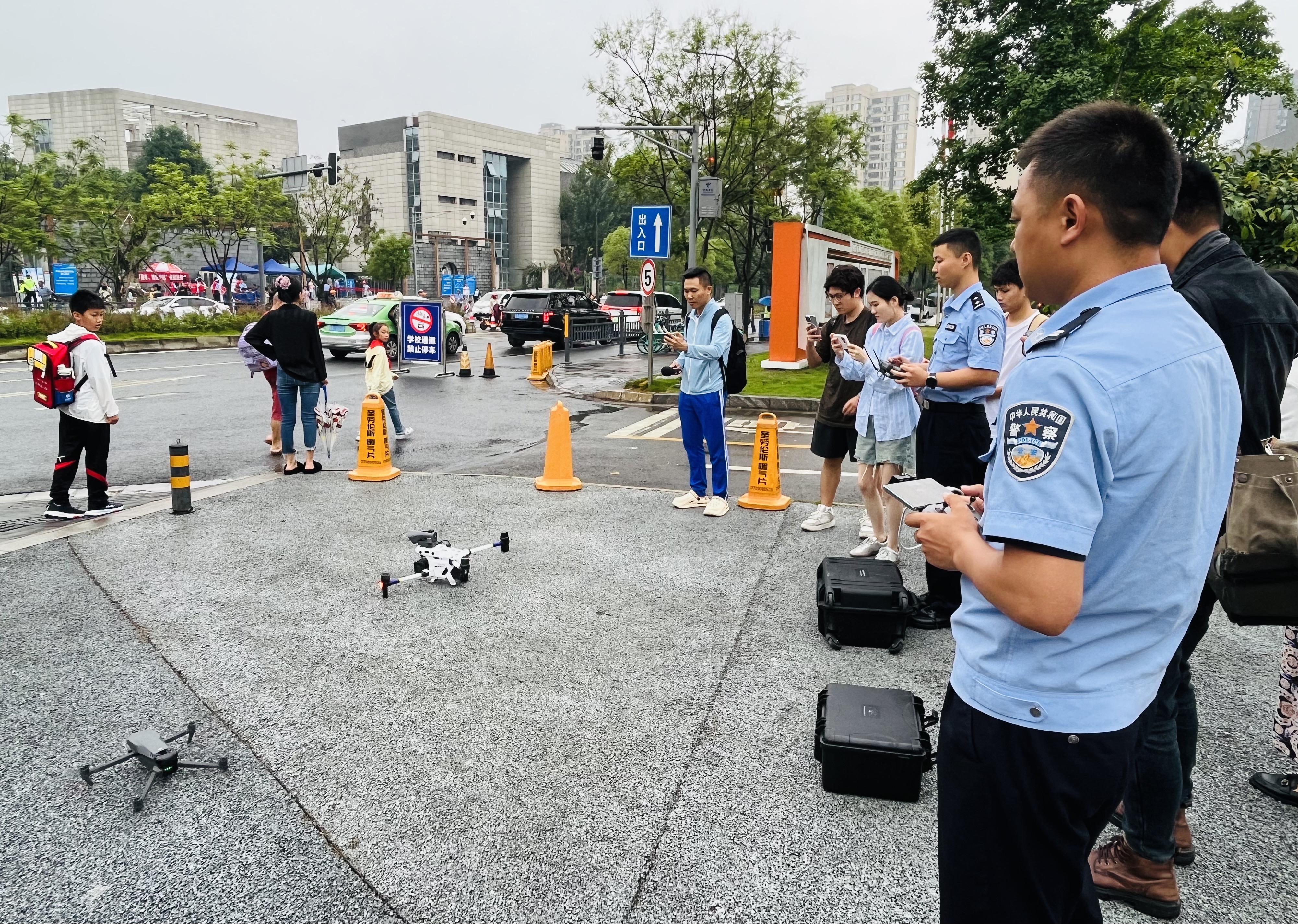“警用无人机主要有高机动、全覆盖、无死角的优势。无人机升空以后,可以就考点周边进行大范围巡防,与天网监控及地面警力展开‘三位一体’协调联动,一旦发现考点周边出现交通堵塞、车辆违停等情况,立即前往处置,确保考点周边环境畅通安全。”成都高新公安巡警大队民警田茂俊介绍说,“考生安全抵达考点后,警用无人机会对在外等候的家长进行文明候考、考试期间勿大声喧哗的高空‘喊话’。”