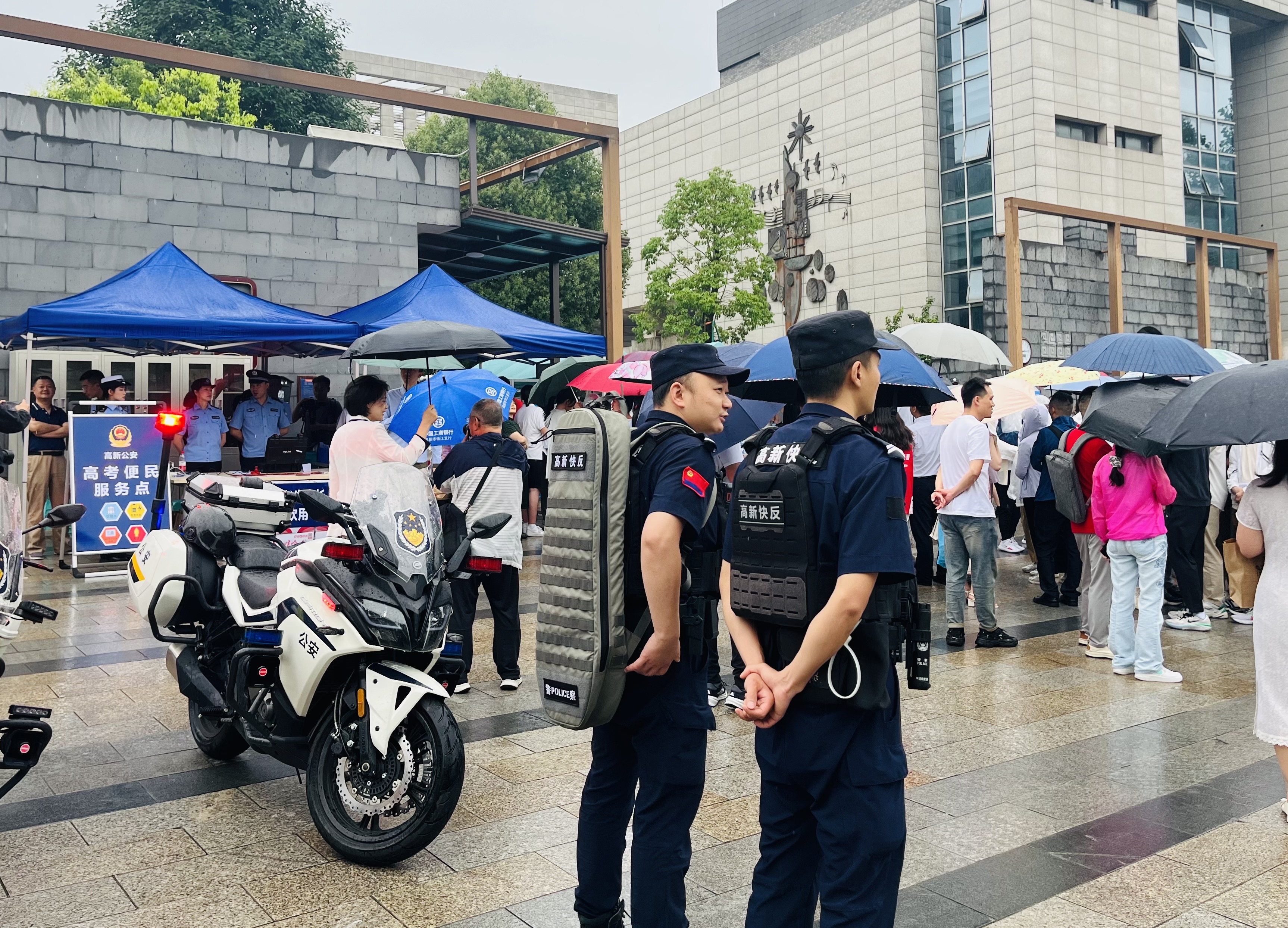 “成都高新公安提示,警方现在正全力为高考学子保驾护航,请各位驾驶员朋友注意听从路面交警指挥,禁止鸣笛,文明出行,为高考的安全保障贡献一份力量,谢谢大家配合!”记者在现场看到,在空中,文明劝导声音从低空飞行的无人机里不断传来,地面上,民警在雨中维持交通秩序,辅路和人行道畅通,考生和送考家长有序经过,考点周边秩序井然。
