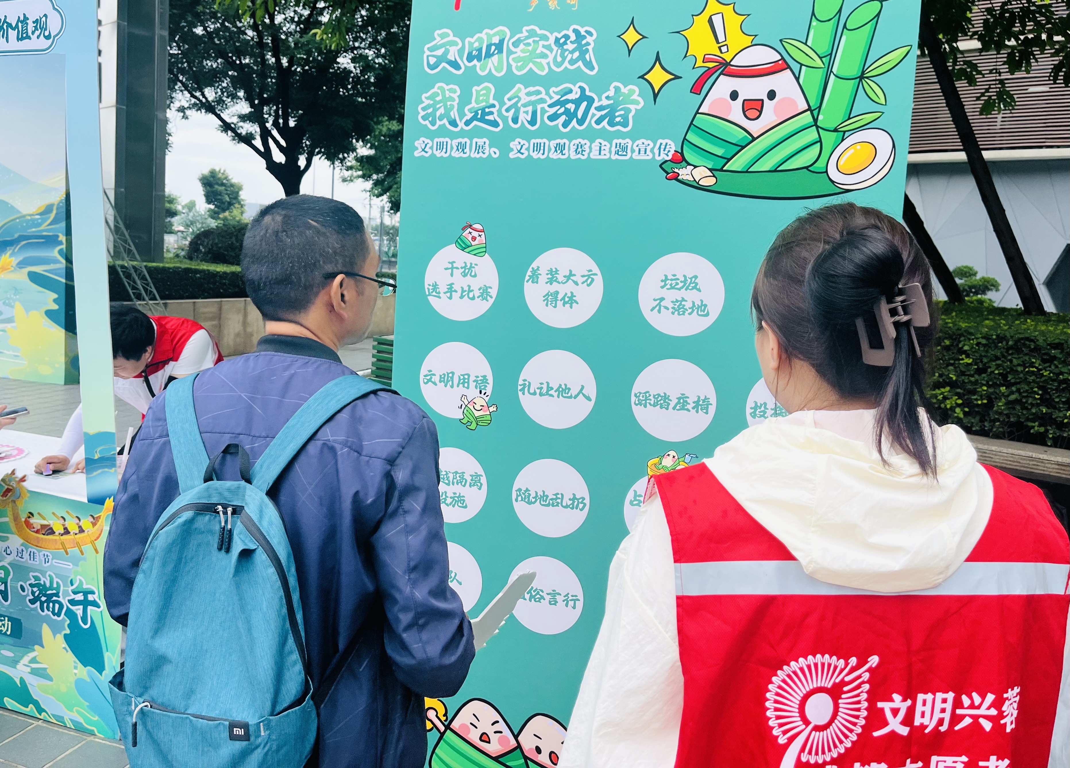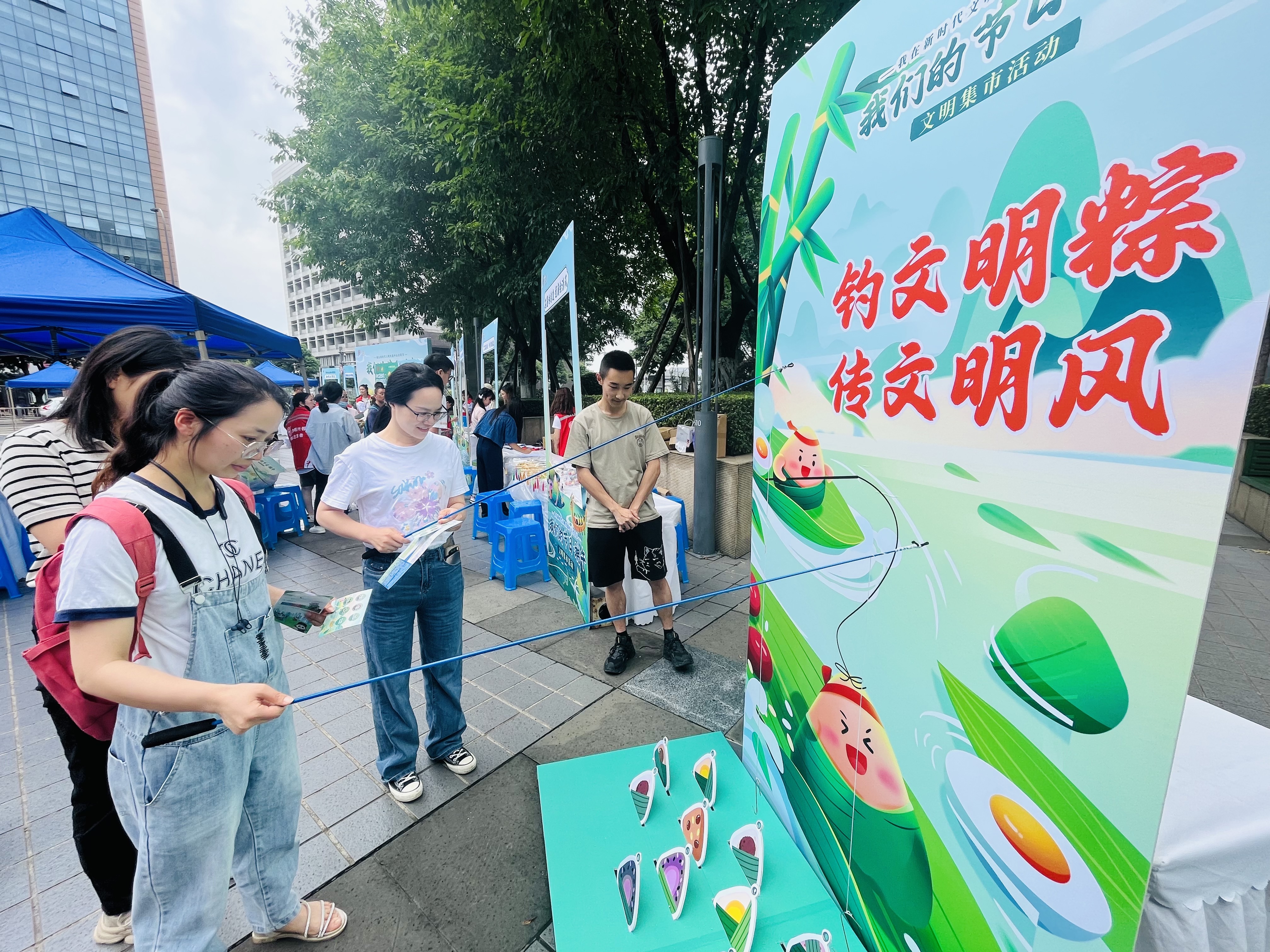 此次活动以“文明集市+民俗互动”的形式开展,将“你好成都·文明有礼”与节日充分结合,设置了多个互动区域,包括集市区、端午民俗体验区、惠民区、宣传展示区,为居民们带来了一场丰富多彩的端午盛宴。