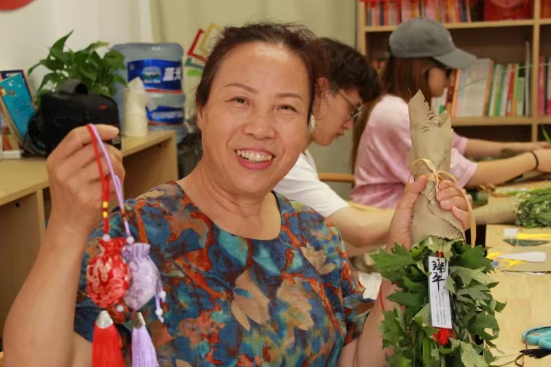 现场还设有话家风包粽子、做艾草锤、端午上上签等传统项,居民们或在摊位驻足体验,或在与邻居交流体验心得。空气中弥漫着粽子、艾叶的清香,无论是大人还是孩童,都喜笑颜开、乐在其中。“我体验了好几个项目,感受到了浓浓的端午味儿,这些传统习俗我们要一代代传承下去。”居民张小兰说。