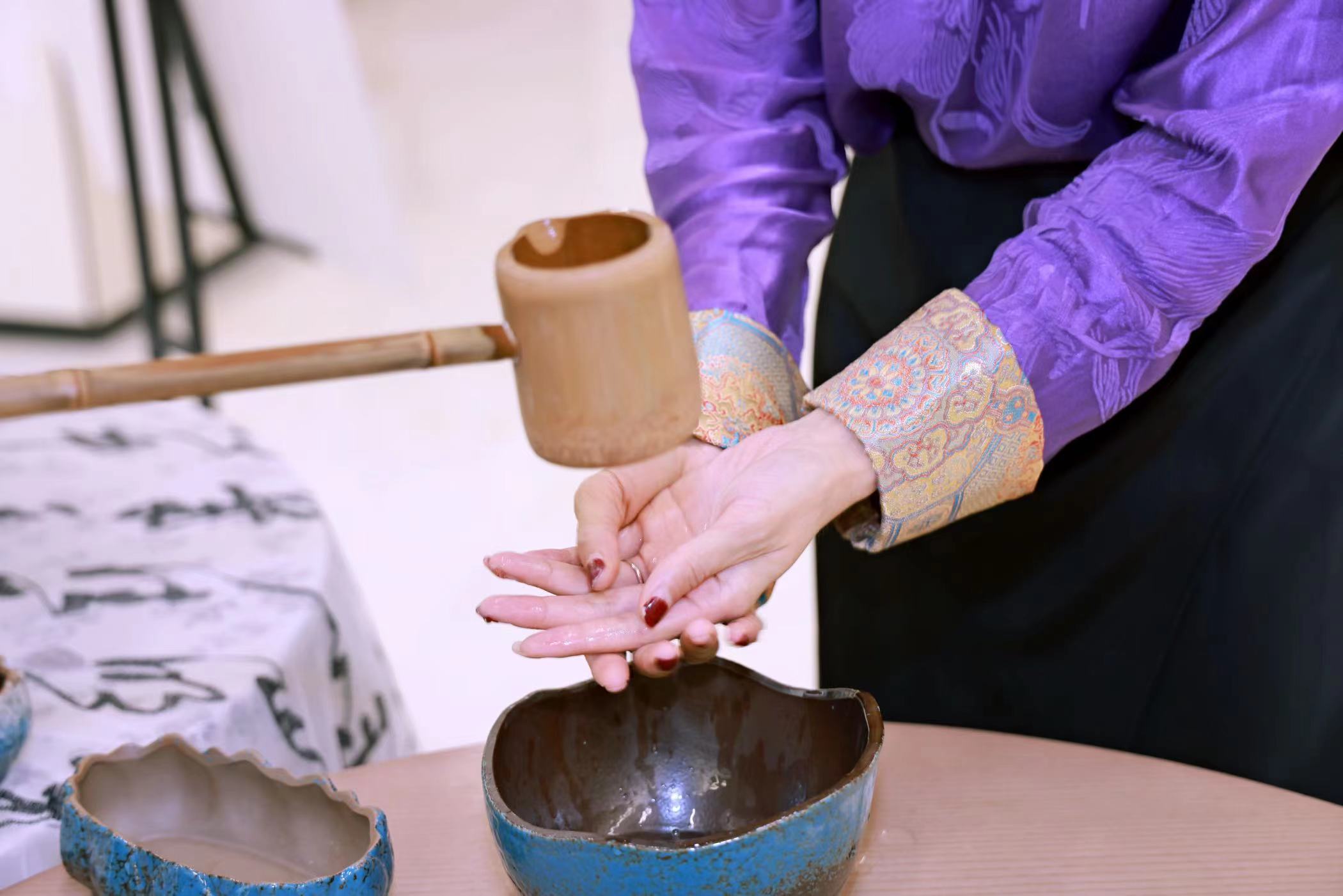 活动现场,在趣味横生的“粽子”签到板上打卡后,一场别开生面的传统沐兰汤之礼让现场气氛瞬间升温,家长们纷纷用菖蒲草和艾叶水洗手,祈福平安。通过击鼓传“粽”的传统节日知识竞答,家长们不仅重温了端午节的历史渊源,更在愉快轻松的氛围中感受到了中华传统文化的深厚底蕴。