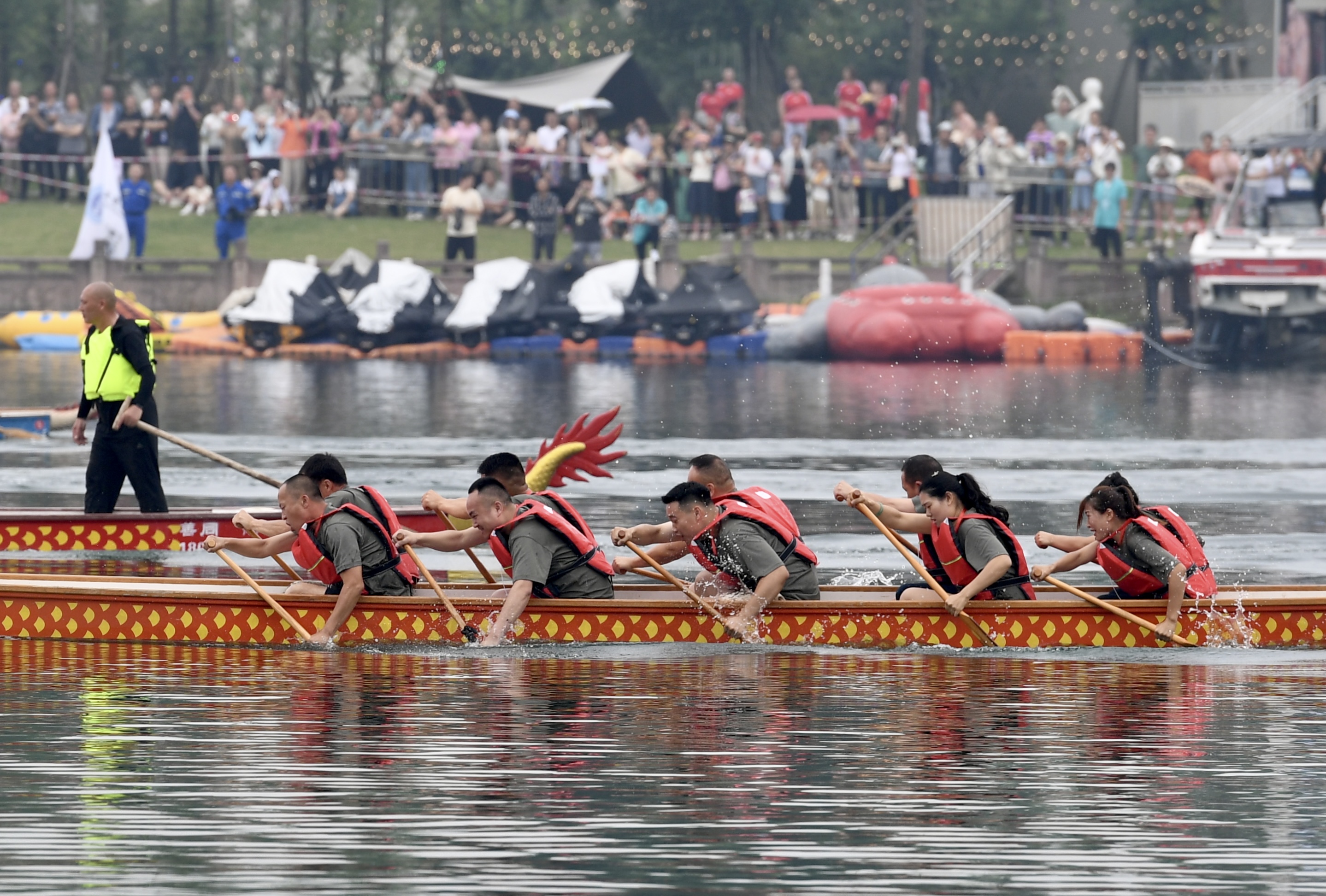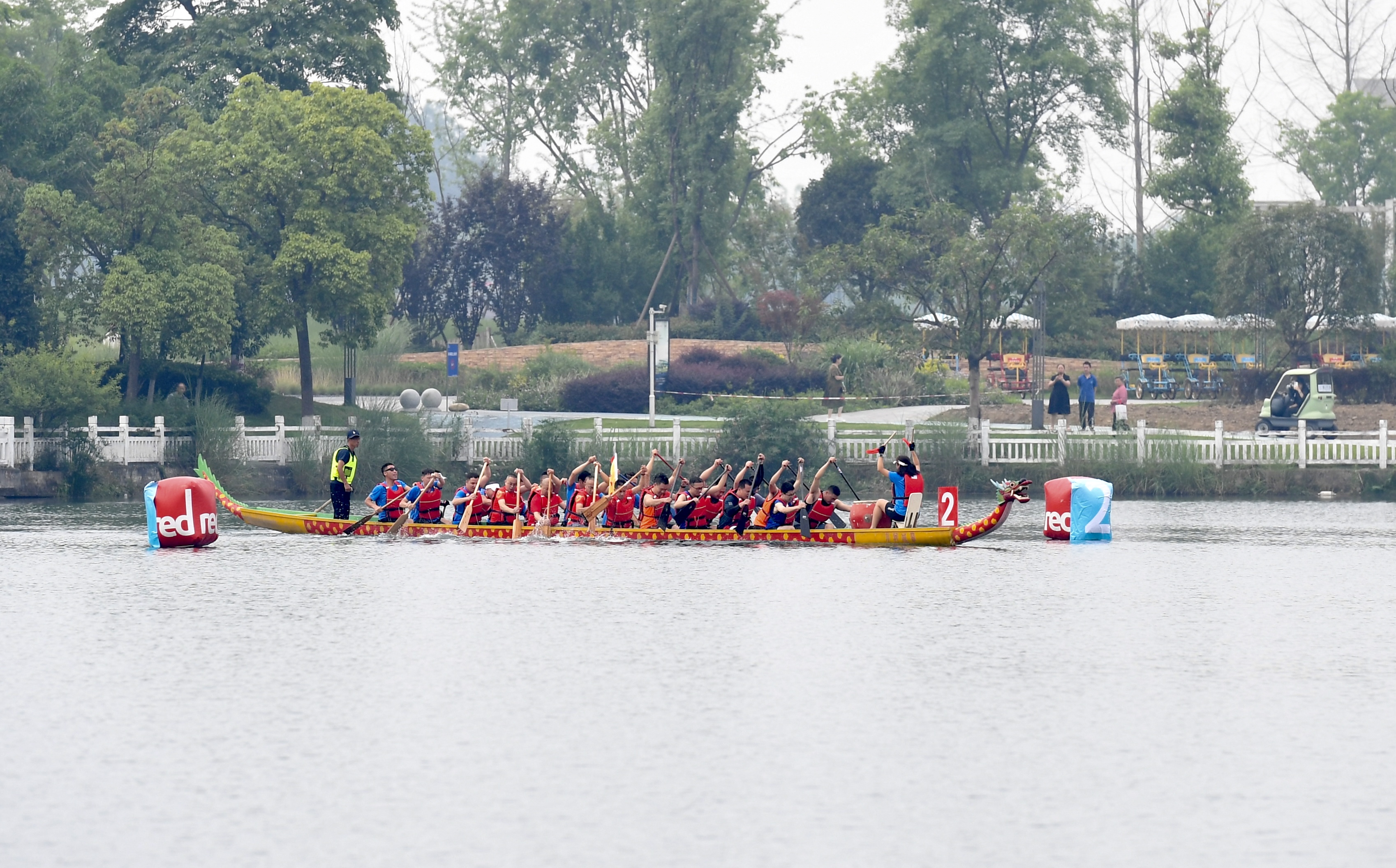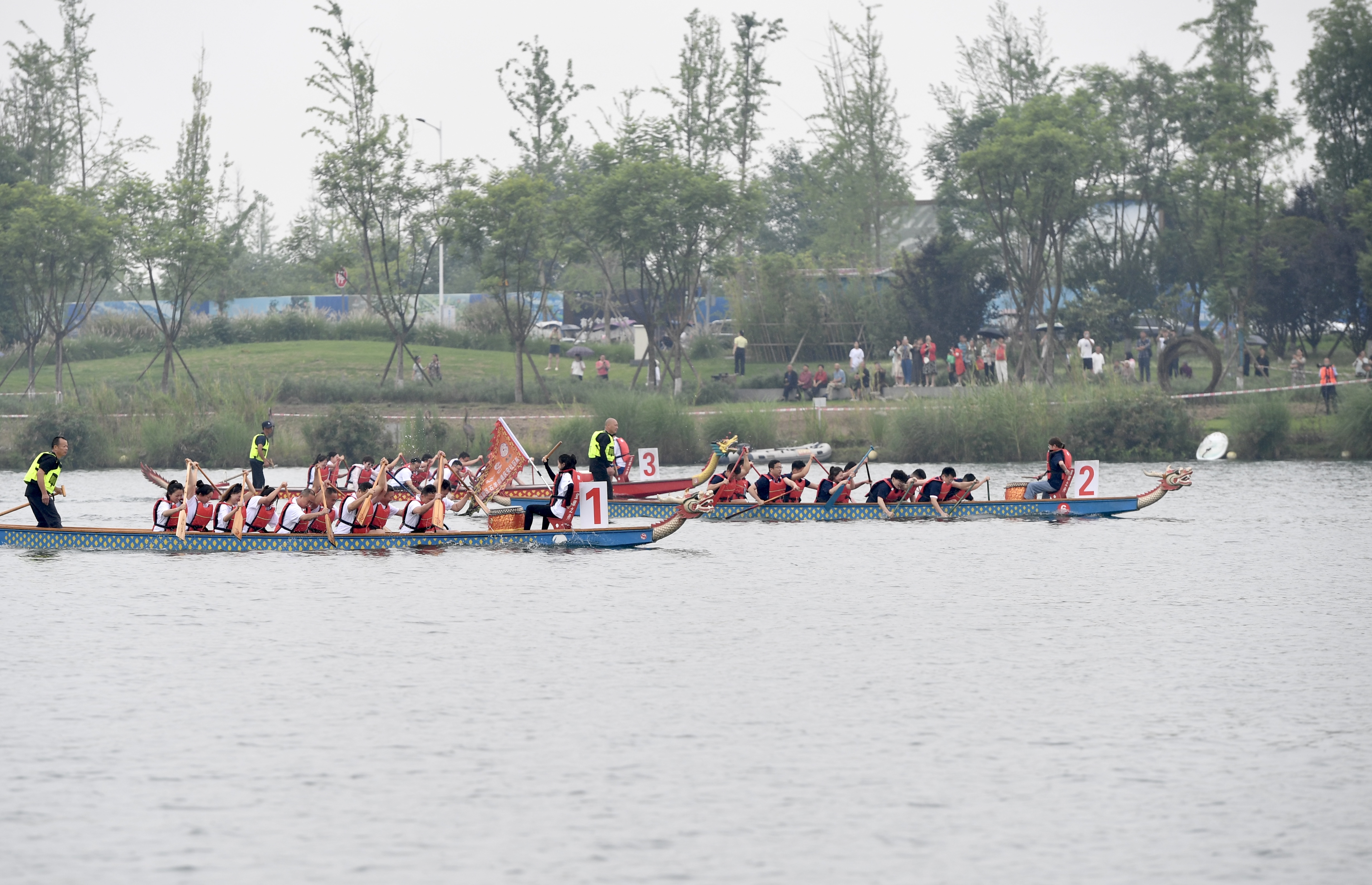 6月10日,农历五月初五,正是中华民族的传统节日——端午节。在诸多节俗中,最具代表性、最富观赏性的当属龙舟竞渡。一大早,成都西湖公园水域热闹非凡,由成都高新区管理委员会、大邑县人民政府主办的2024全“新”全“邑”龙舟友谊赛在此开赛。