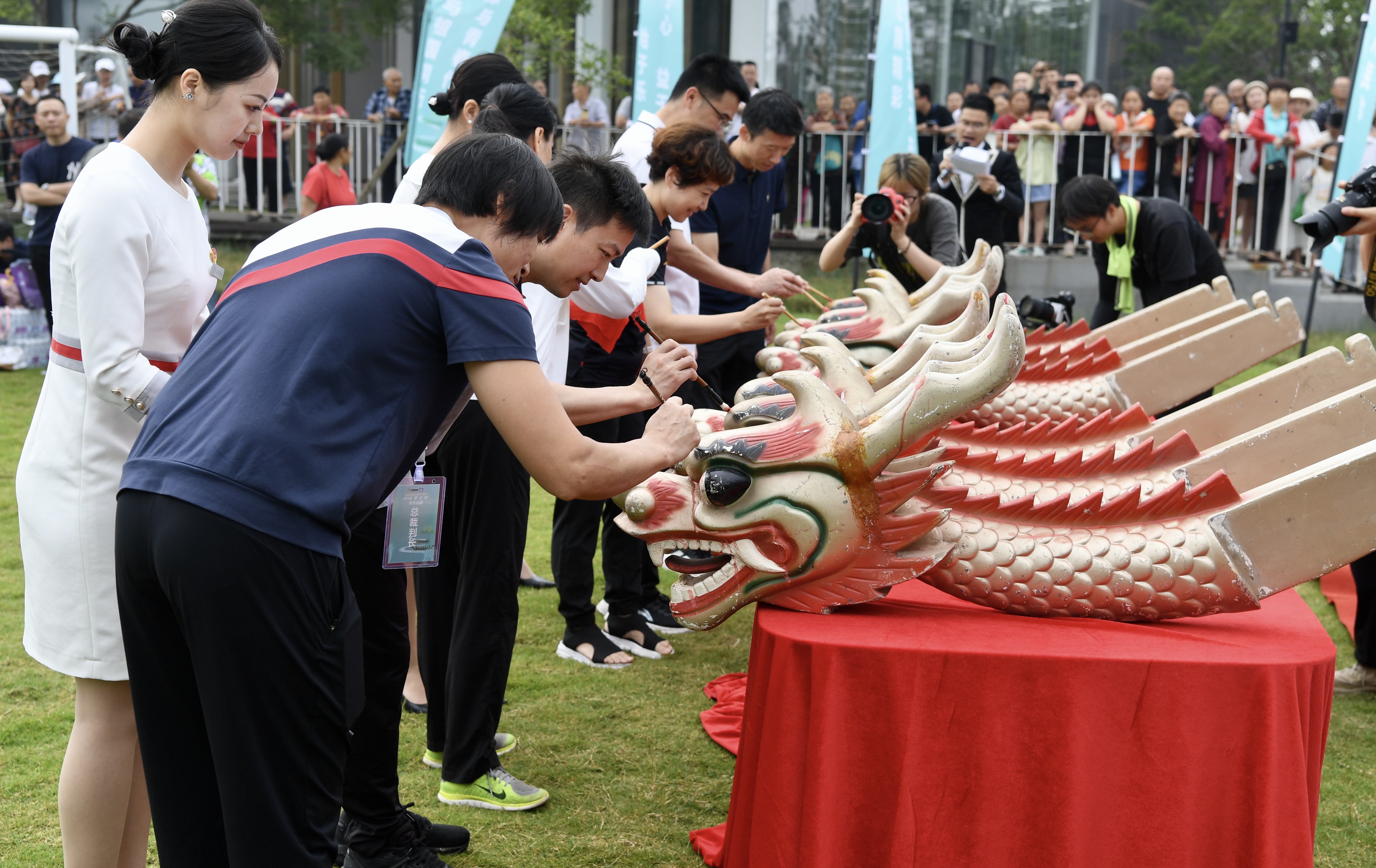 “龙舟装置”被点上眼睛、鼻子、嘴巴、龙角