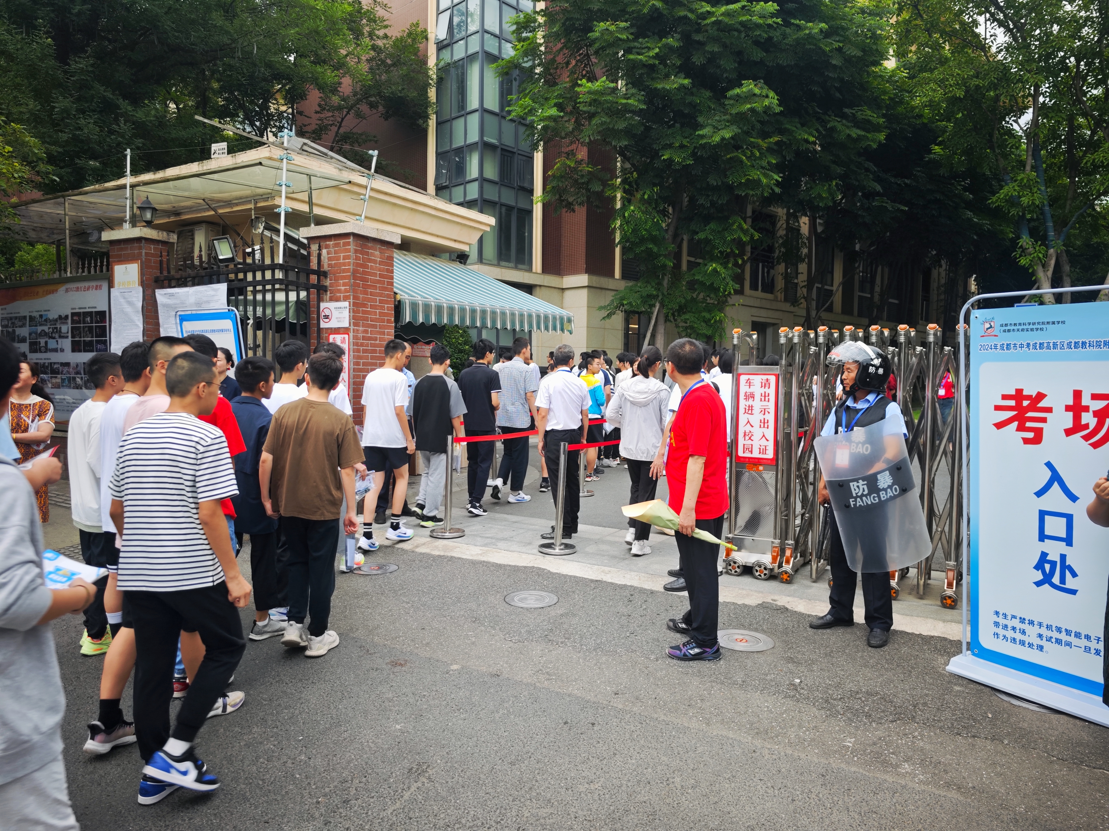 上午8点,距离开考还有一小时,考生们已在成都高新七中初中天和学校考点外等候入场,而在成都教科院附中考点,考场外的大红横幅营造出满满的考试氛围。带上准考证,昂首阔步进入考点大门,少年们正去迎接人生中的一次重大挑战。