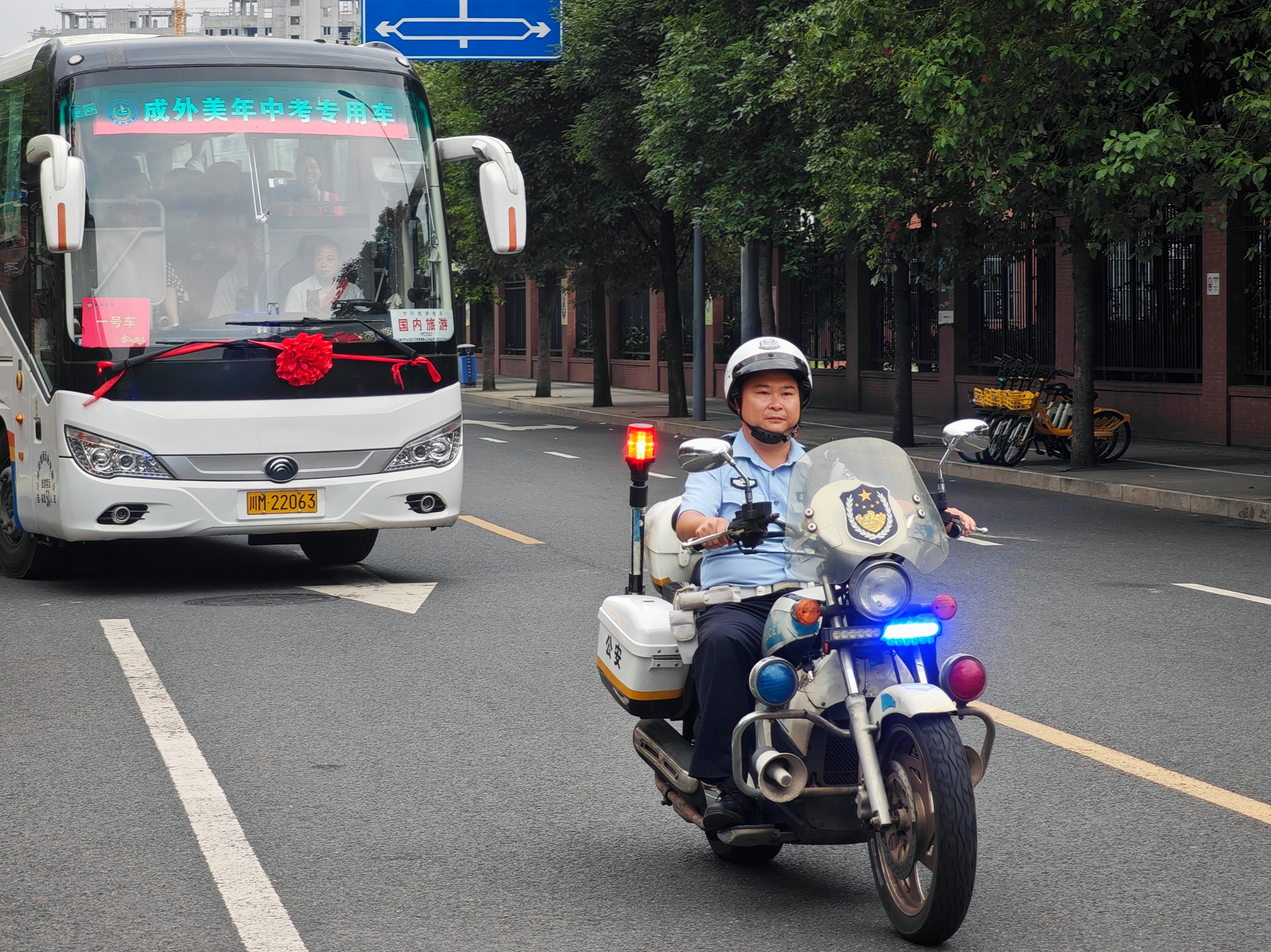除了交警在现场护航外,各中考考点外还专门停放了救护车,医护人员随时待命,以防突发情况。各方力量着力组织考生安全、有序、快速进入考点,着力把好考生入场关。