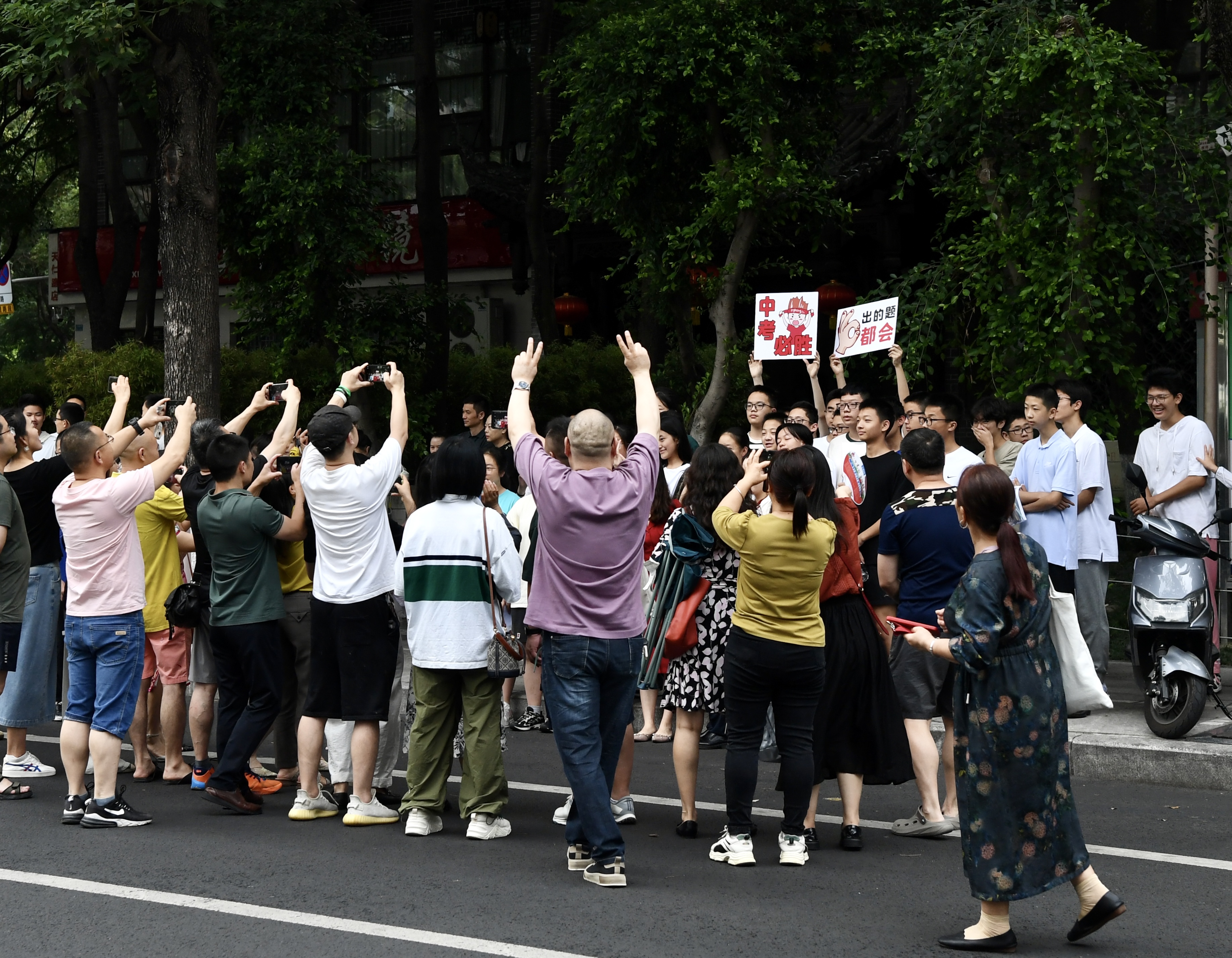 与此同时,家长和老师们也精心准备,来到考场外为孩子们加油打气。“加油!你没问题。”“放平心态,好好发挥!”考场外满满都是加油打气声。记者在现场看到,许多老师和家长特意穿上了旗袍或红色服装,寓意着“旗开得胜”和“鸿运当头”,以此表达对考生们的深切祝福。
