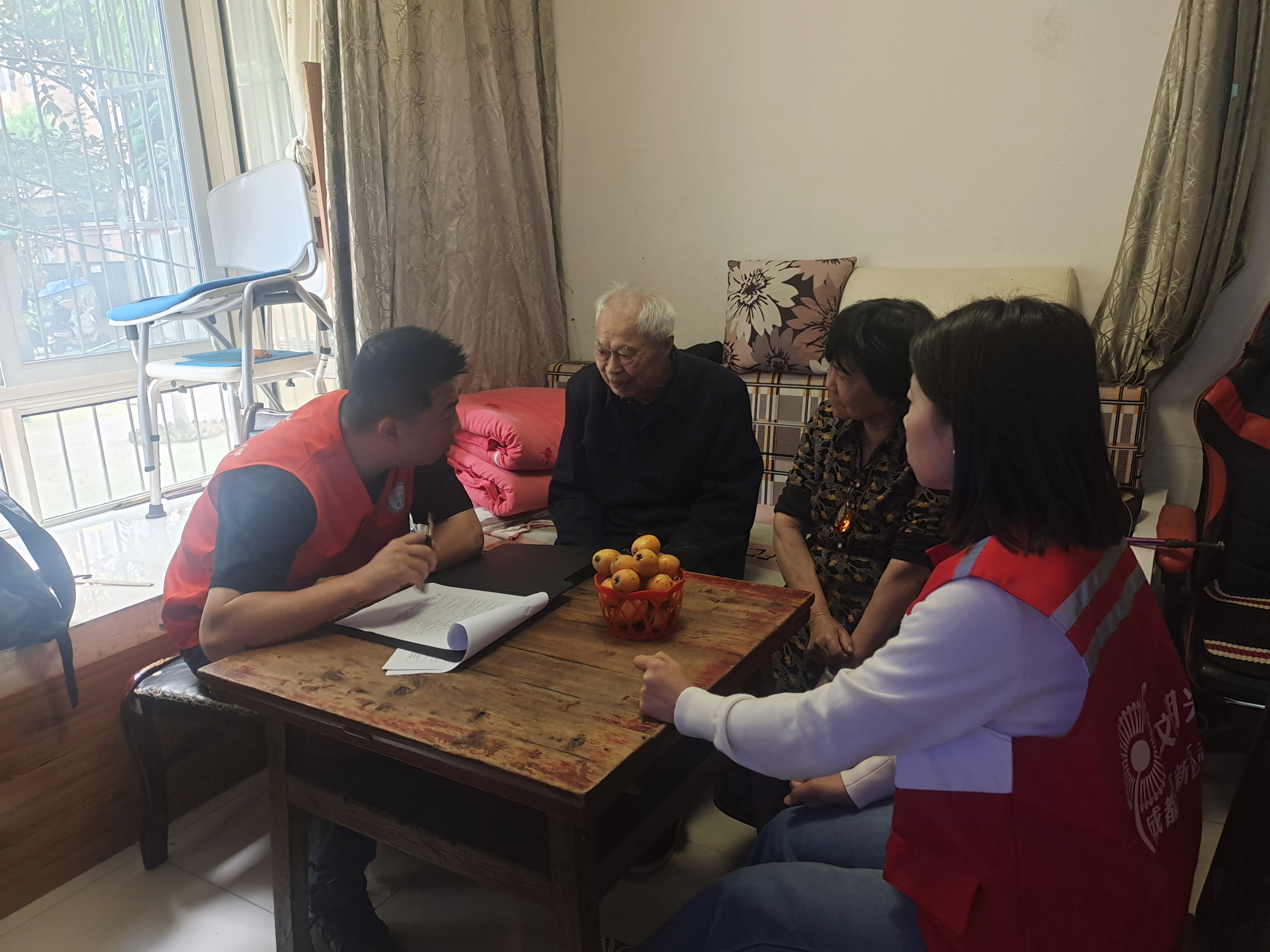 社区工作人员上门了解家庭情况