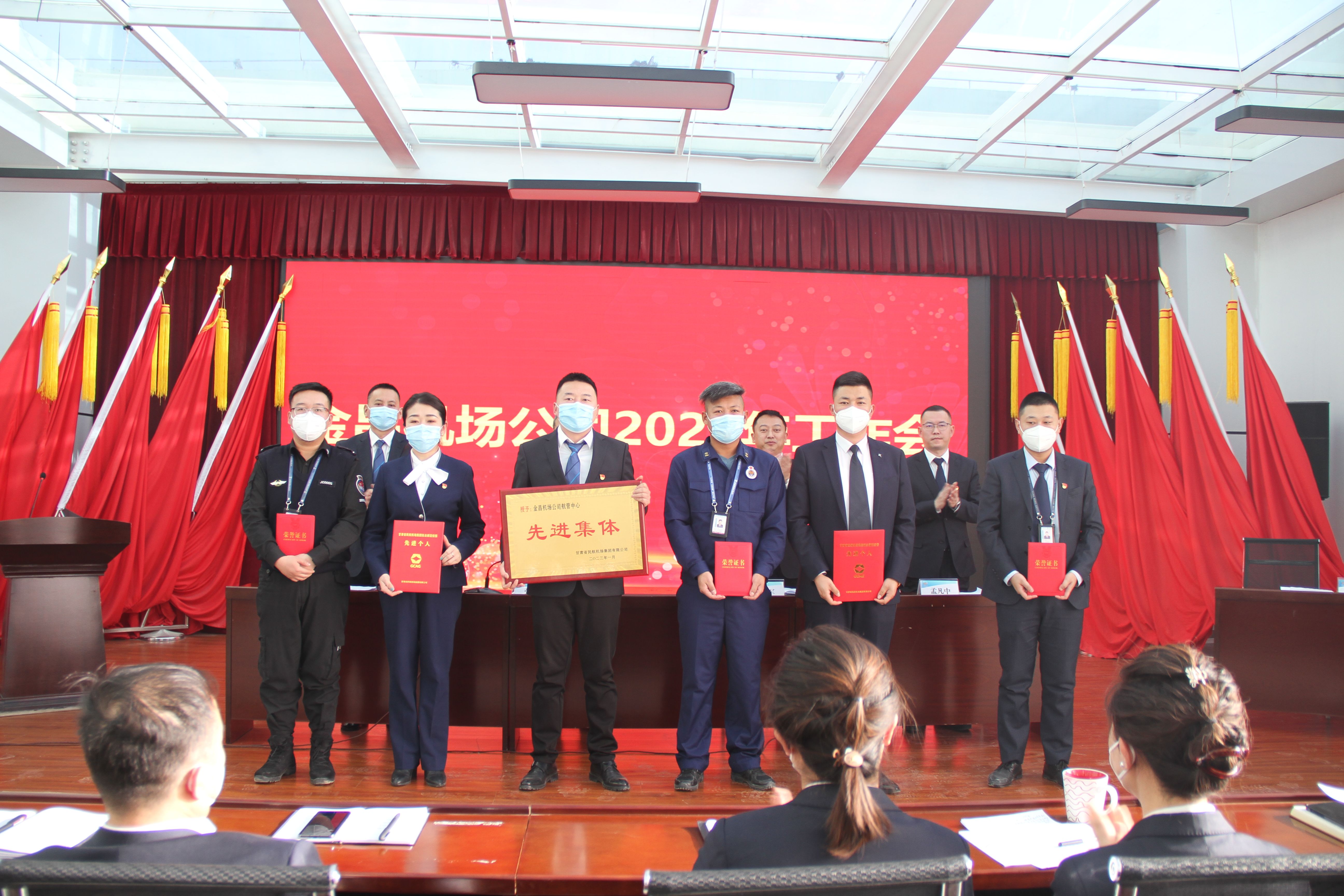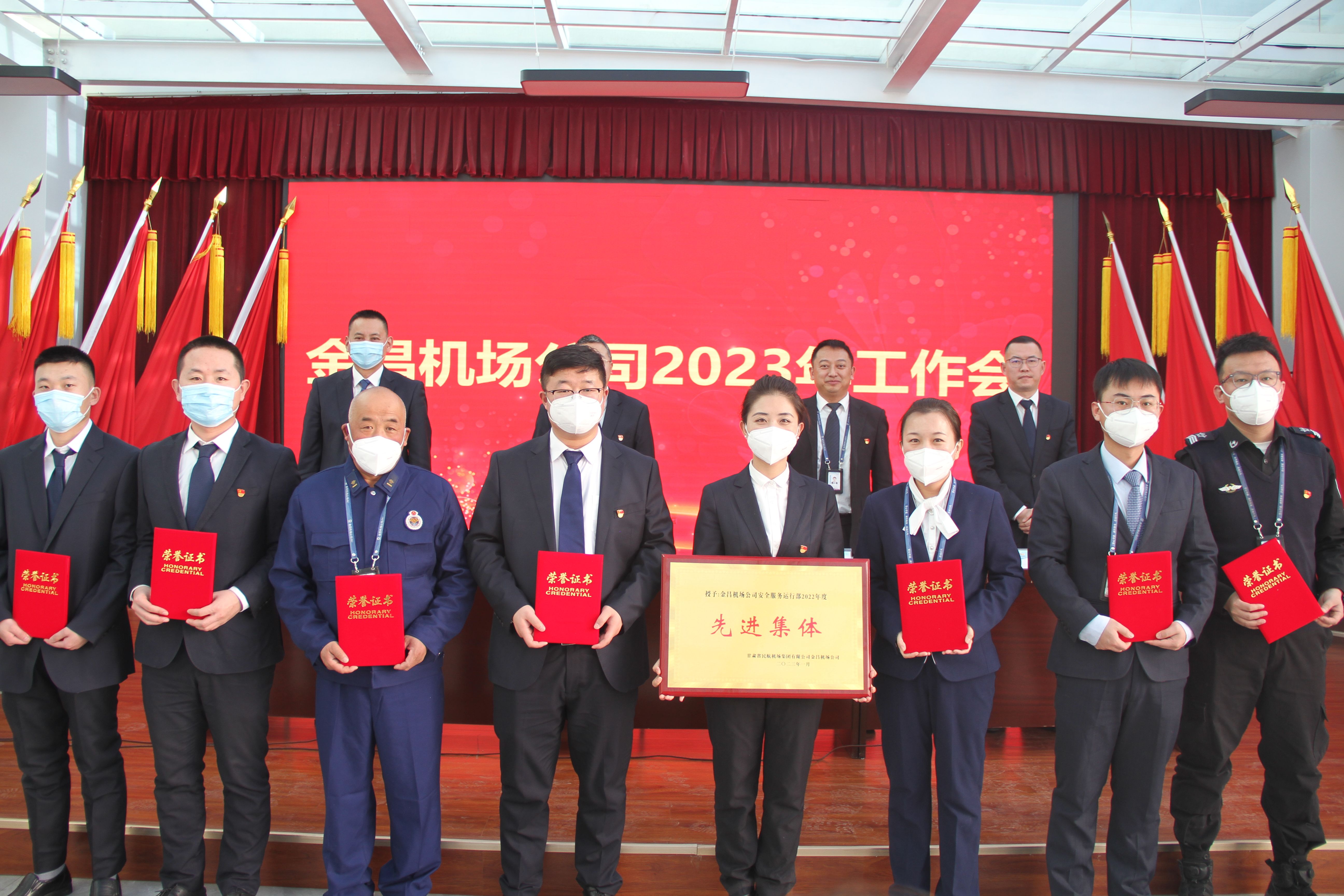 会议通报了2022年度集团先进集体和先进个人、抗击新冠疫情先进集体和个人,表彰了金昌机场公司2022年度先进集体、先进个人和专项工作优秀集体和优秀个人。张博同志代表公司与各部门负责人签订了2023年安全责任书;公司基层管理干部代表进行了交流发言。