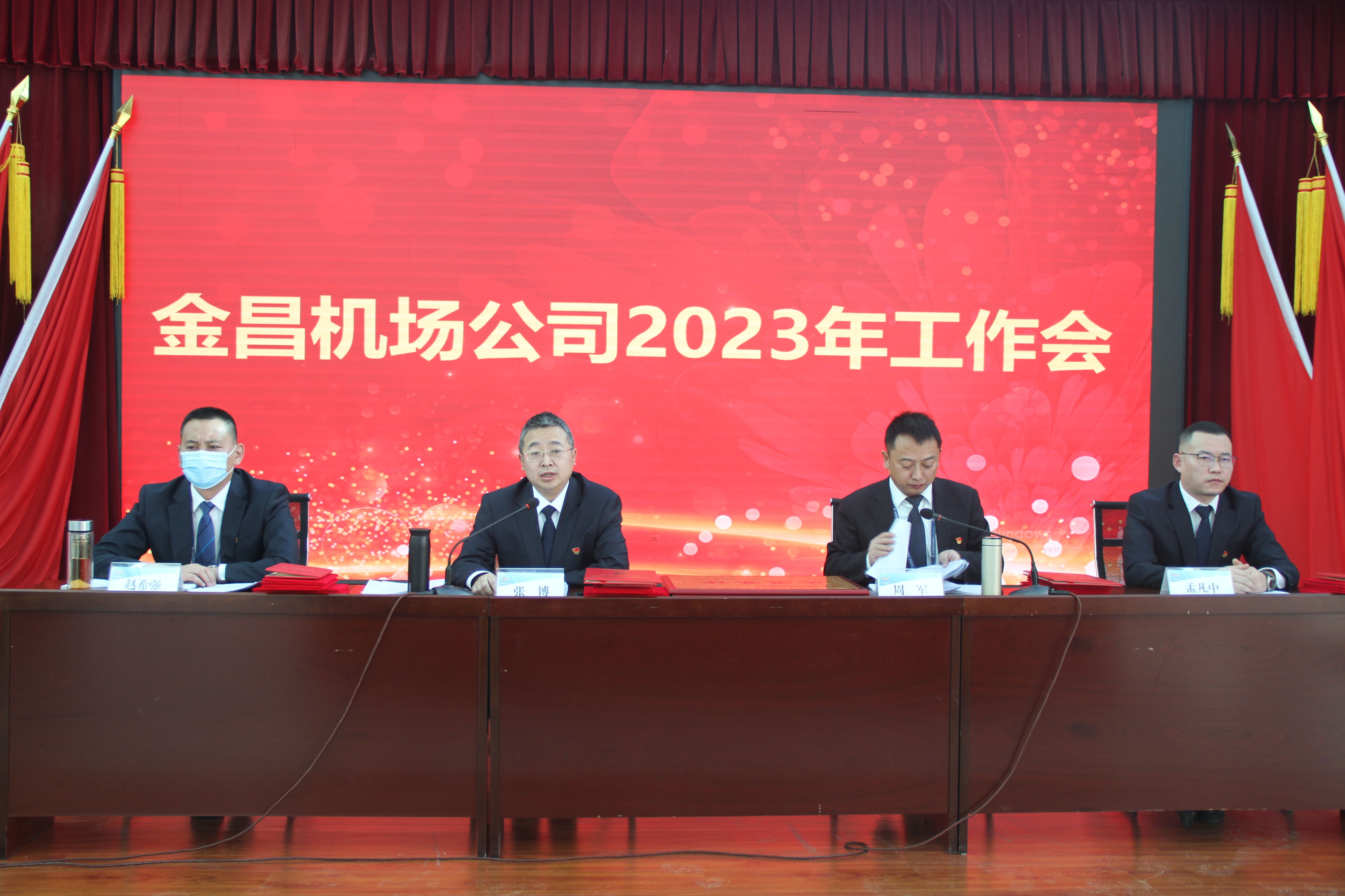 1月17日下午,金昌机场公司组织召开了2023年工作会议,回顾总结公司2022年的主要工作,安排部署2023年的主要任务。公司党委班子成员、各部门负责人及职工代表40余人参加了会议,公司党委书记、总经理张博作工作报告并讲话,公司副总经理、工会主席周军主持会议。