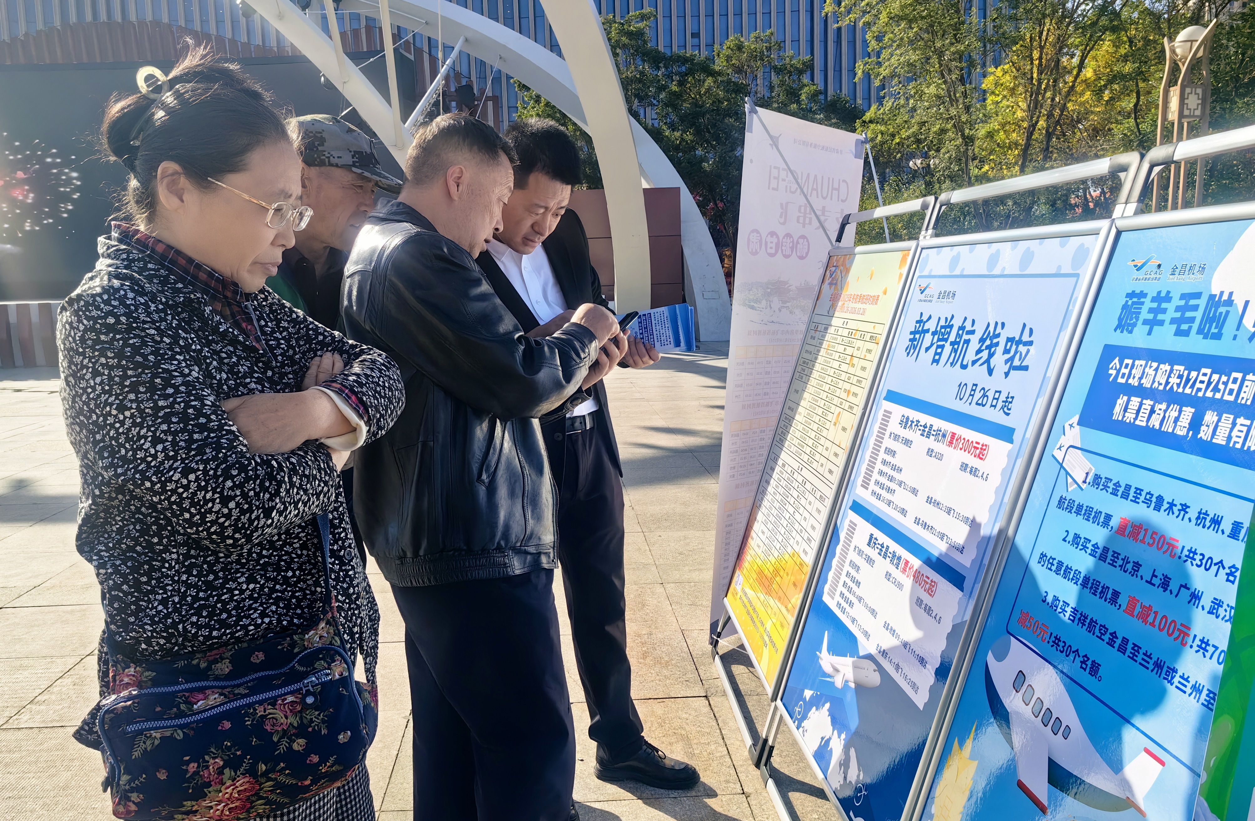 10月12日,金昌机场联合金昌市交通运输局、甘肃省民航航空发展有限公司、南方航空、吉祥航空、华夏航空及同程旅行等合作单位,在金昌市人民文化广场成功举办“‘飞’凡新程、‘旅’动金昌”2025年冬航季航线航班推介会暨航空旅游集市活动。此次活动旨在宣传推介冬航季新开航线与航旅产品,进一步激活本地航空旅游市场,为广大市民与旅客提供更加丰富、便捷的出行选择。