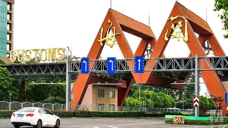 △上海自贸区外高桥保税区,海关5号门。(图/视觉中国)